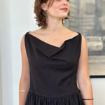Handwoven in 100% organic cotton, this plain black dress features a softly structured cowl neck and flowing maxi length that moves beautifully with every step. Fully lined in black cotton for a smooth, breathable finish, it’s a versatile piece that transitions effortlessly from workday to evening.