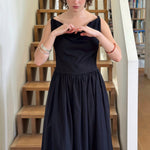 This black maxi dress by Indilisi is a refined take on timeless tailoring. Handwoven from soft, breathable organic cotton, the Celia Cowl Neck Maxi Dress combines a flattering cowl neckline with an elegant drape and subtle shaping for comfort and confidence all day long.