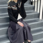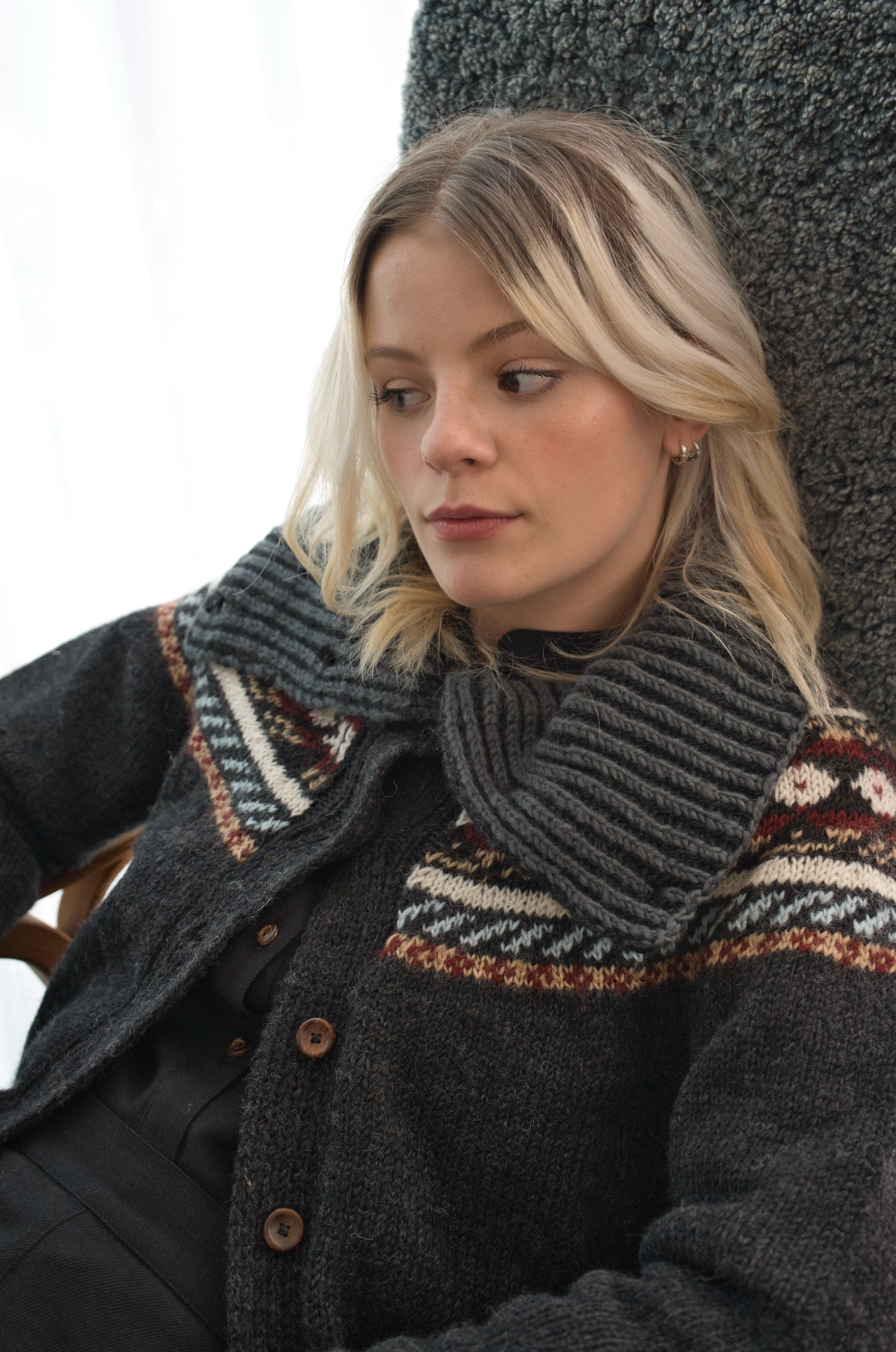 Phoebe Fair Isle Cropped Cardigan in Dark Grey by Indilisi