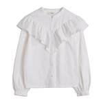 Frill blouse with refined structure and pond shell buttons