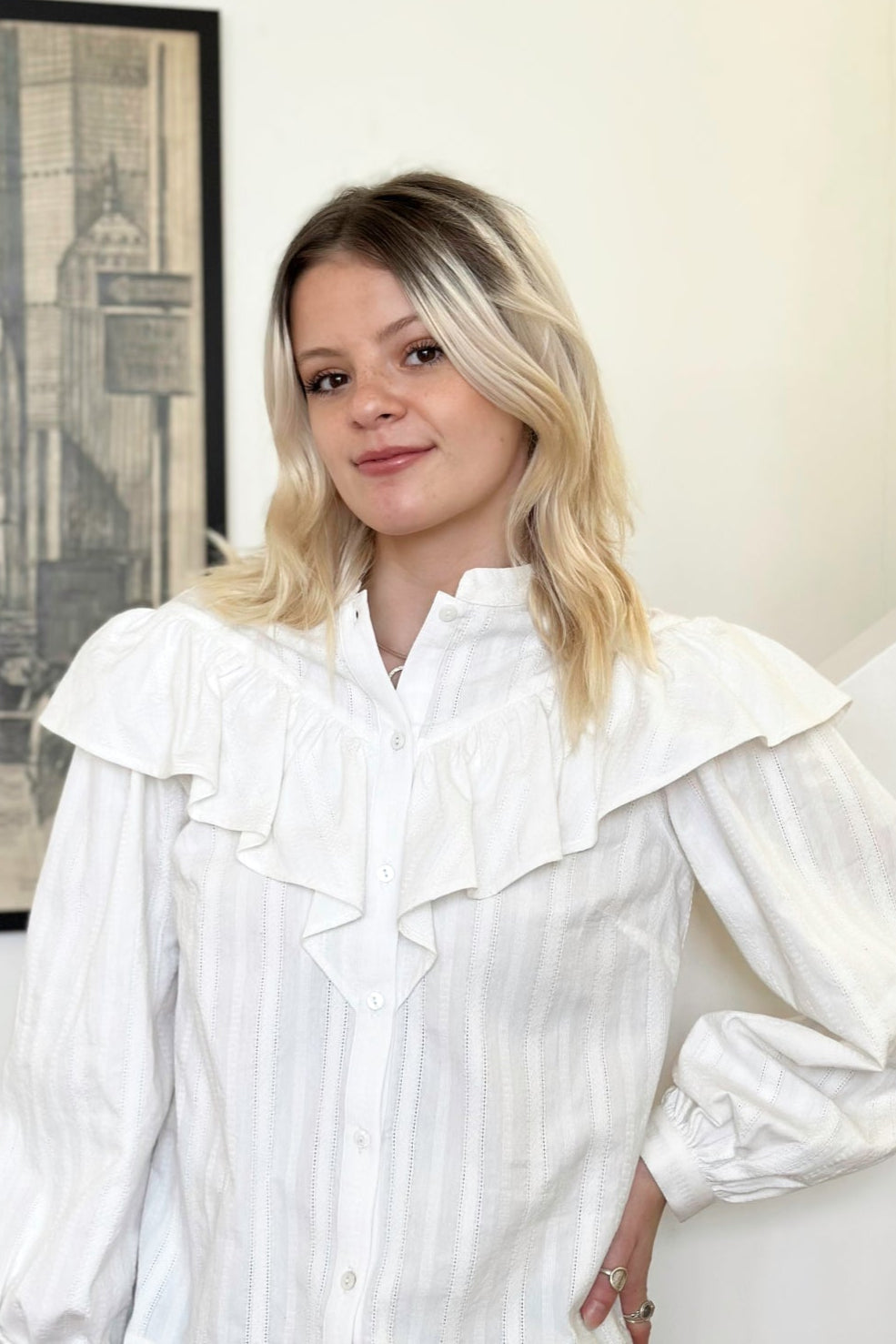 Ruffle Blouse in White