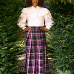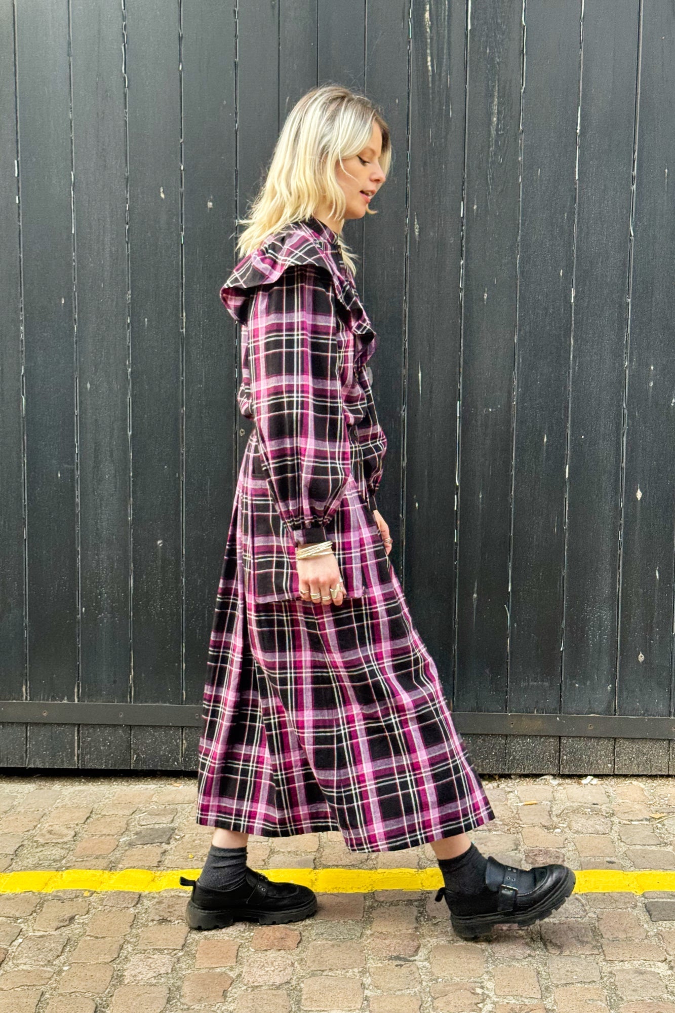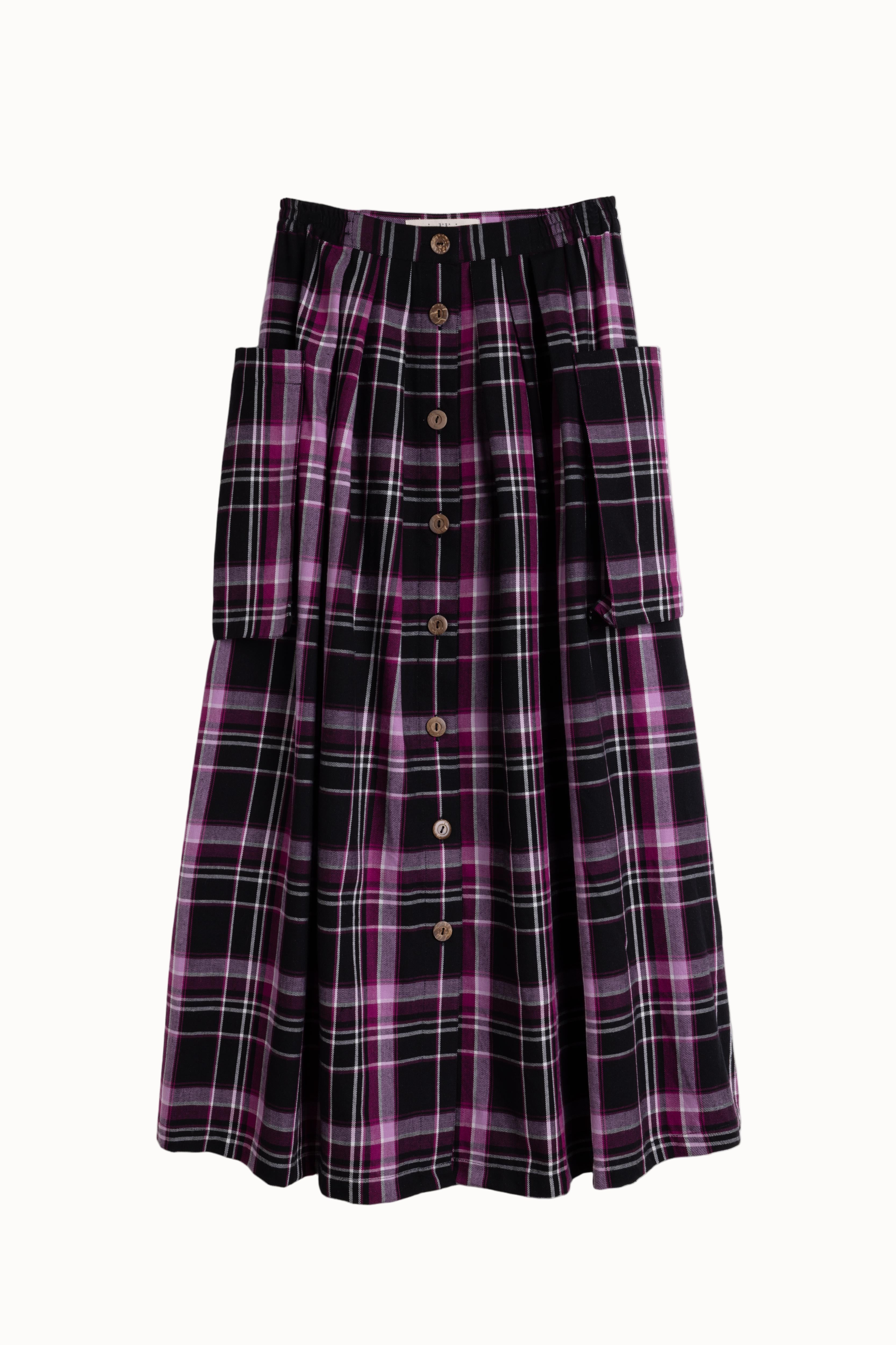 Ruth Check Midi Skirt in Berry & Black by Indilisi