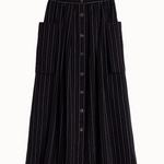 Designed with gentle pleating through the front and sides, this stripe midi skirt drapes beautifully for a relaxed, feminine shape. The elasticated waist offers ease of movement and everyday comfort, while the full-length button-down style allows you to adjust the silhouette for casual or polished looks.