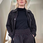 This utility jacket by Indilisi is a unisex handwoven shacket crafted from 100% organic cotton in a striking black and white stripe. Designed for year-round wear, it combines the structure of a shirt with the ease of a jacket - a modern wardrobe essential that balances style, comfort, and craftsmanship.