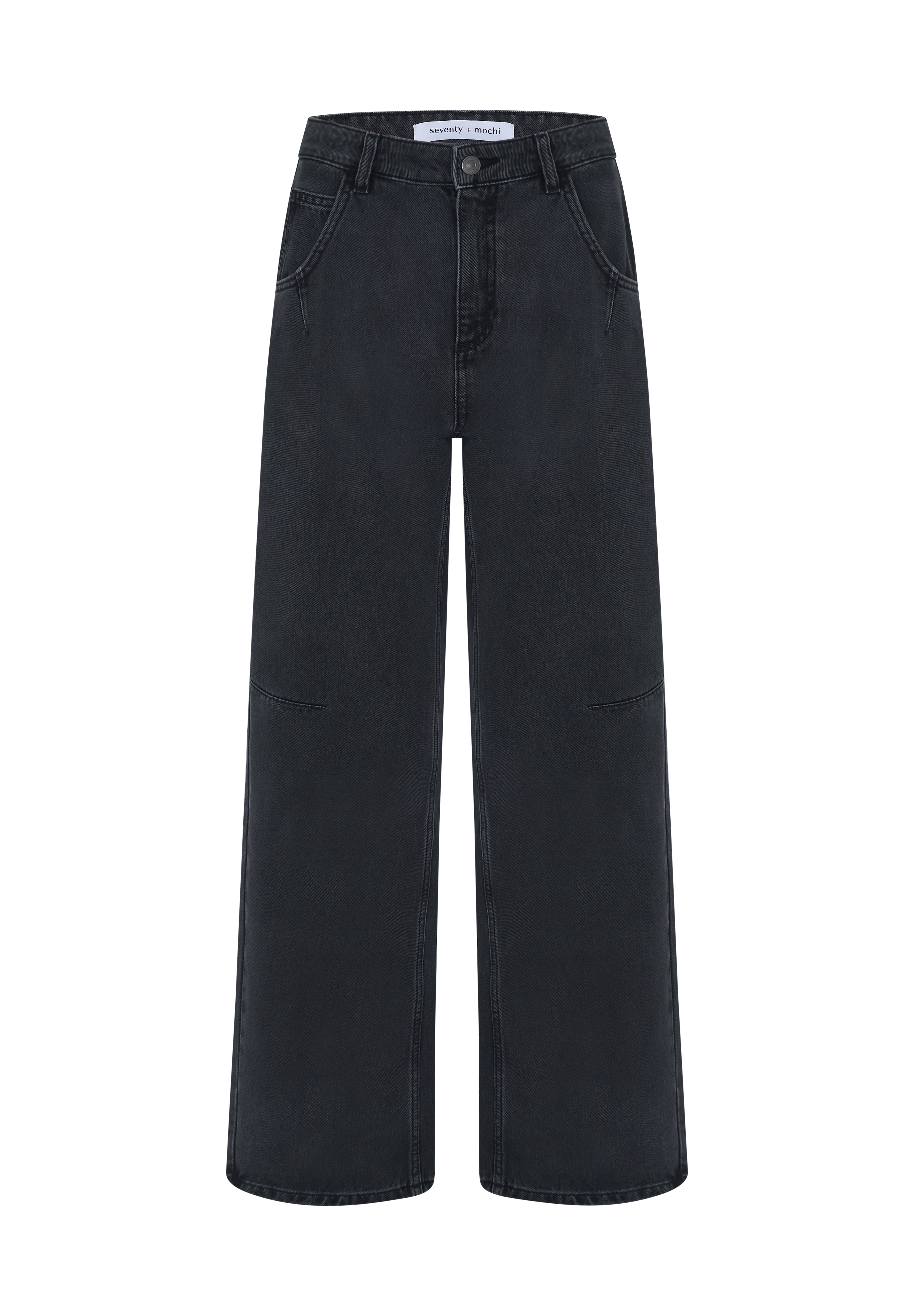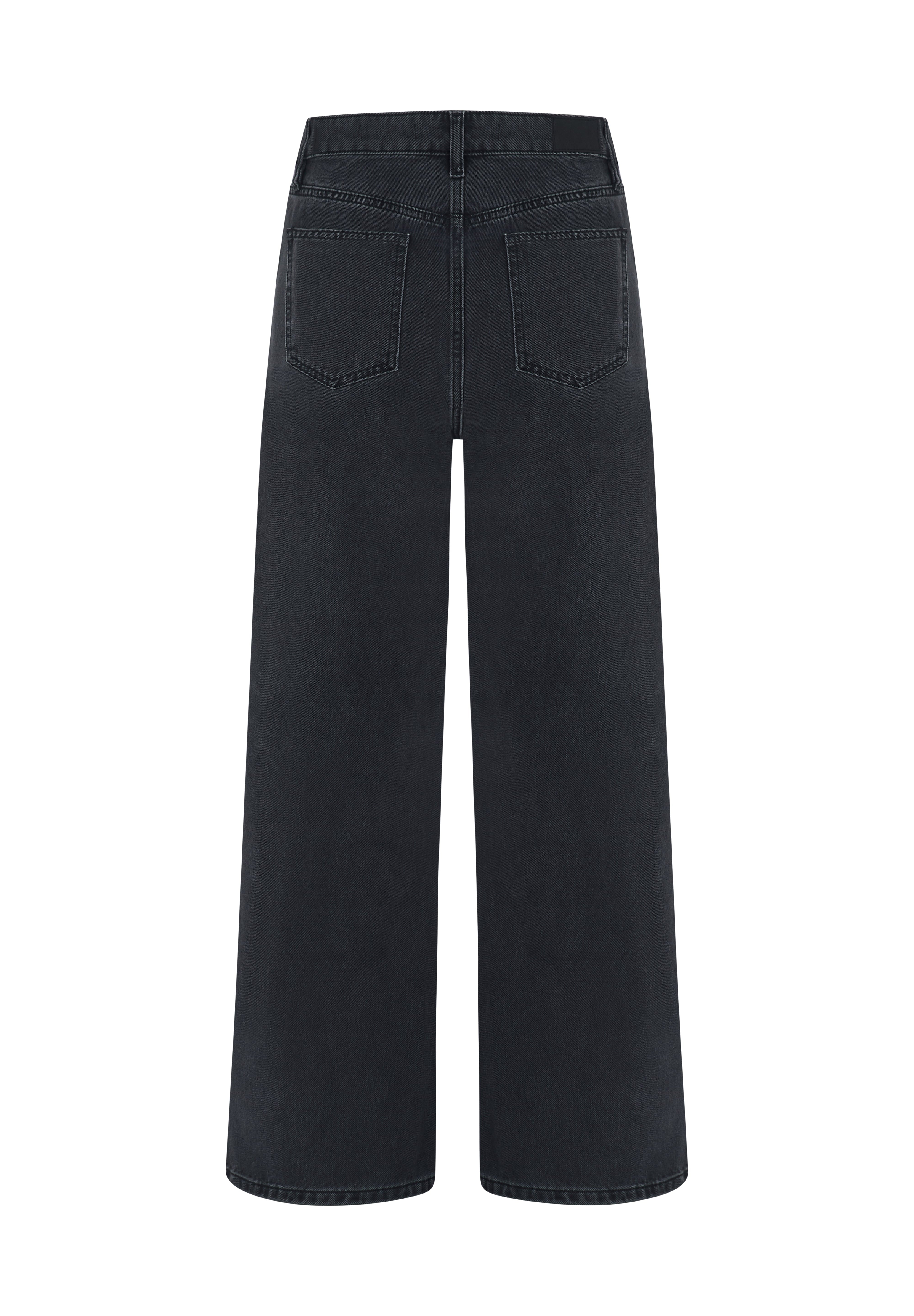 Indigo Full Length Wide Leg Jeans with Button Fly