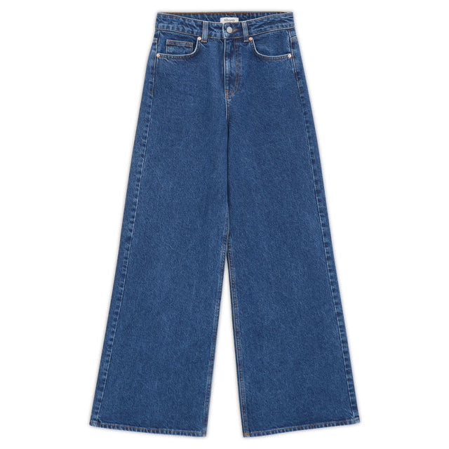 Indigo Full Length Wide Leg Jeans with Button Fly