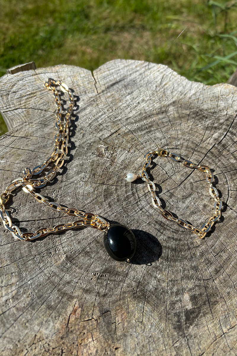 Chunky Gold Hematite & Pearl Spacer Necklace