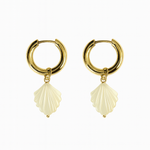 Gold plated hoop earrings with mother of pearl detailing, elegant and lightweight design.