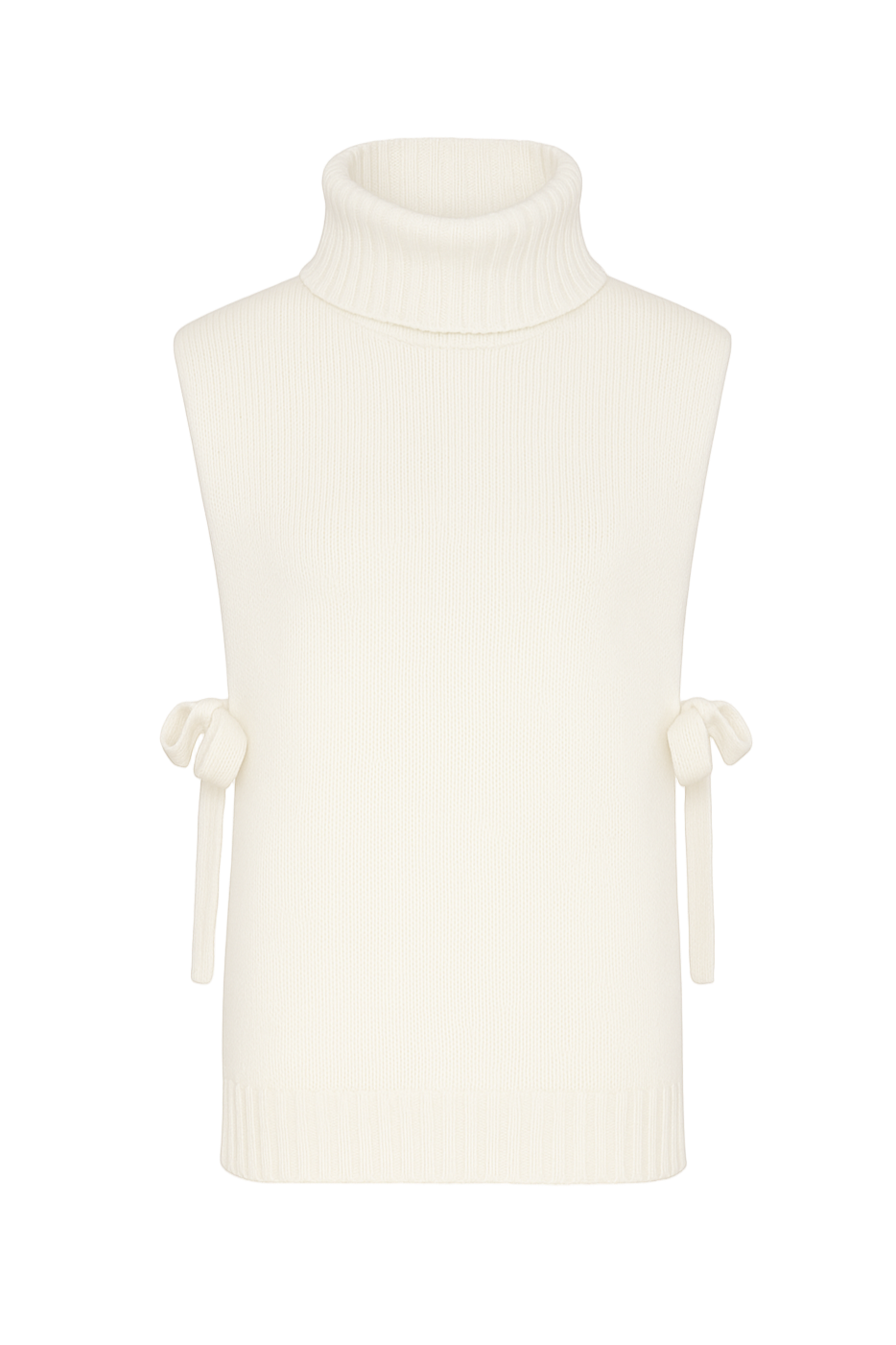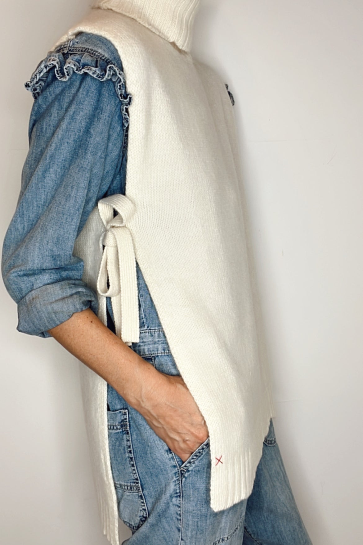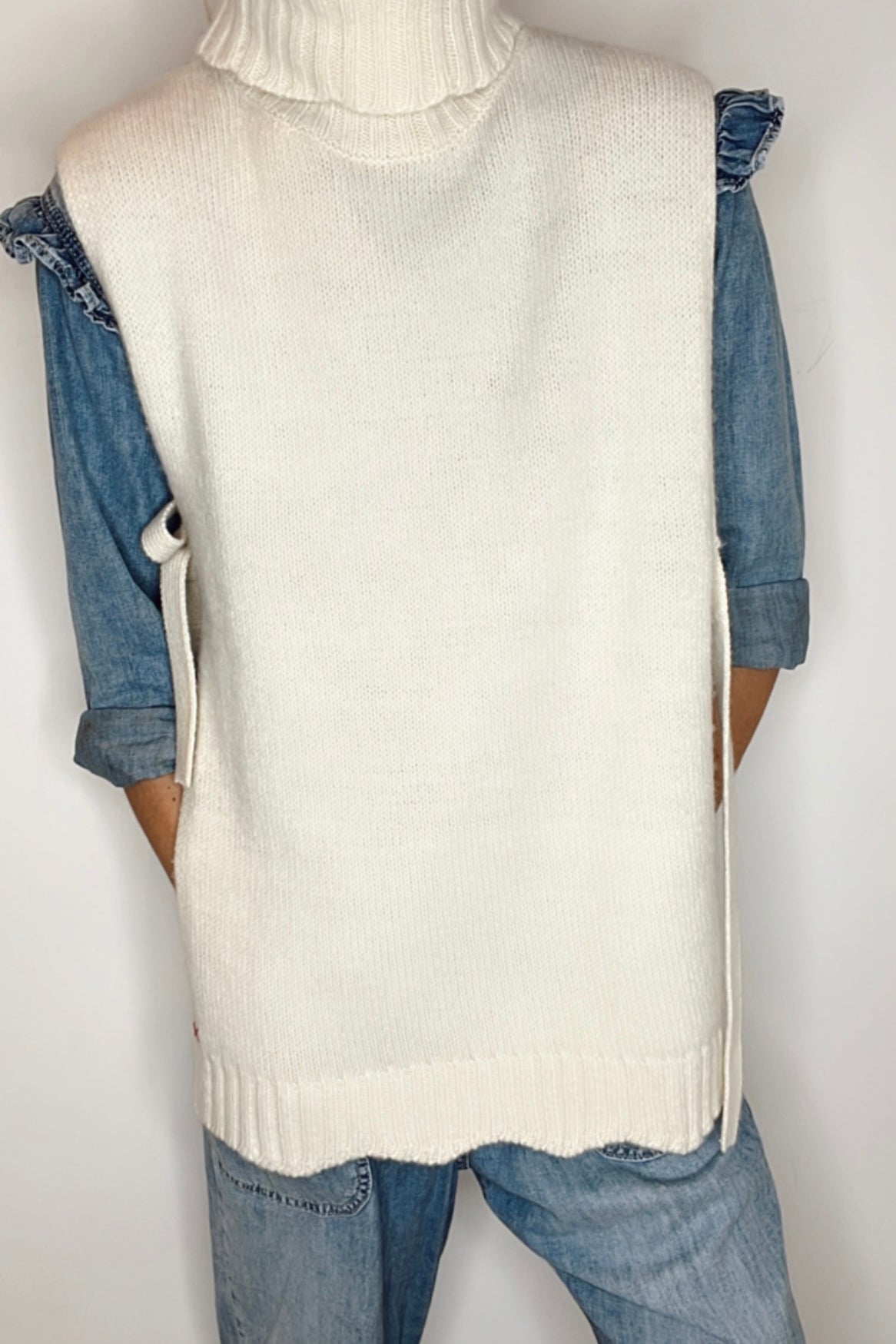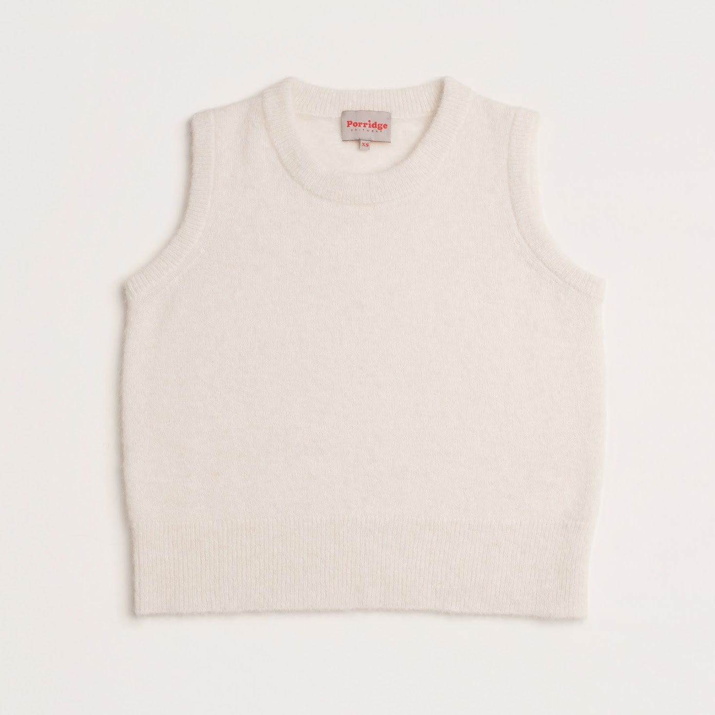 Pointelle Puff Shoulder Crew Neck Jumper in Ivory