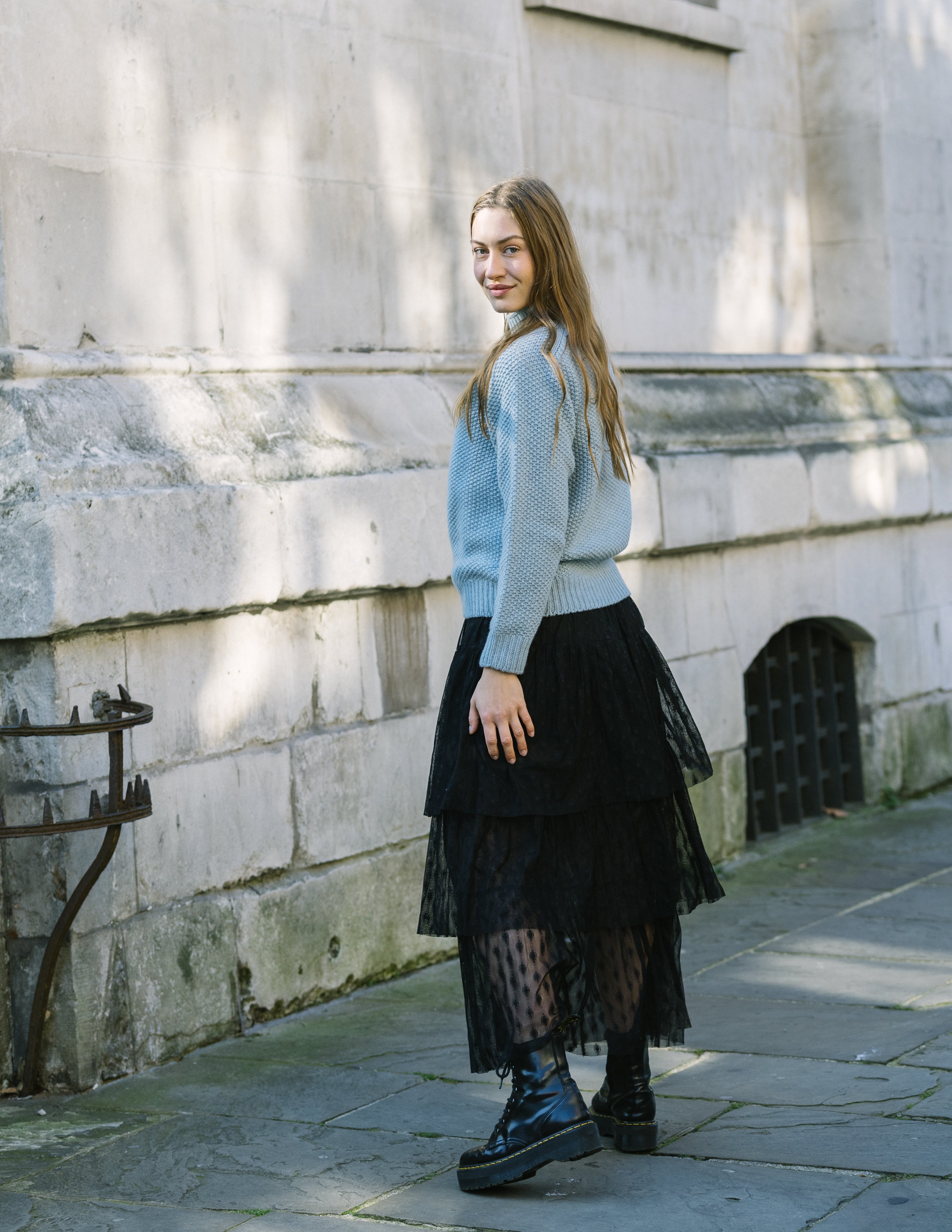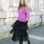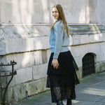 Beautiful lace tiered skirt handmade in London. This skirt can be dressed up or down making it perfect for any occasion, its so easy to wear. Three skirt tiers add layers of drama and the elasticated waist make it super comfortable.