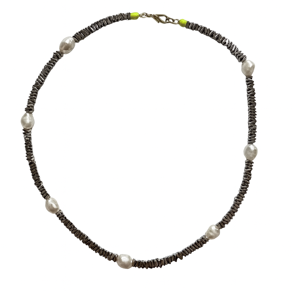 Chunky Silver Hematite and Pearl Spacer Necklace by Bella Riley