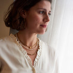 The Gold Hematite & Pearl Spacer necklace by Bella Riley. Exclusive to Percy Langley.