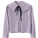 Berry Stripe Shirt with Big Collar & Velvet Neck Tie