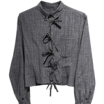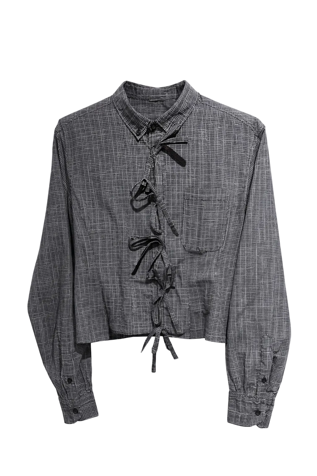 A tailored darted silhouette gently defines the waist, while the adjustable tie-front fastening allows for a custom fit. The result is a feminine take on classic shirting with subtle, modern shaping.