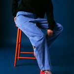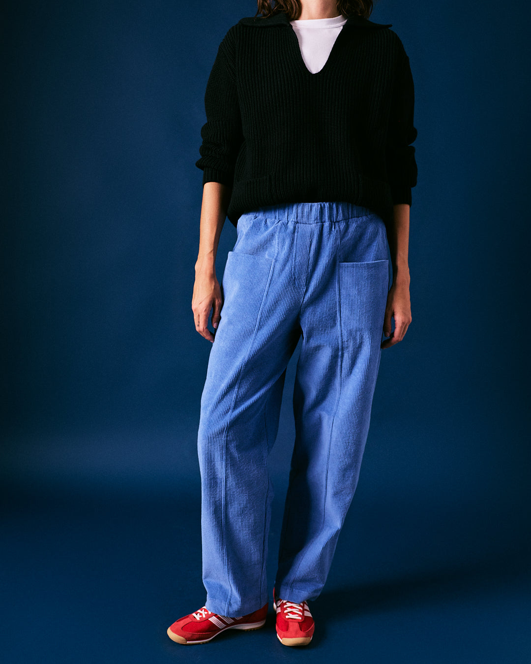 Expertly made in Portugal, these blue cord trousers feature a soft textured finish and subtle seam detailing. The barrel leg cut adds shape and structure, making them an elevated alternative to everyday jeans or joggers.