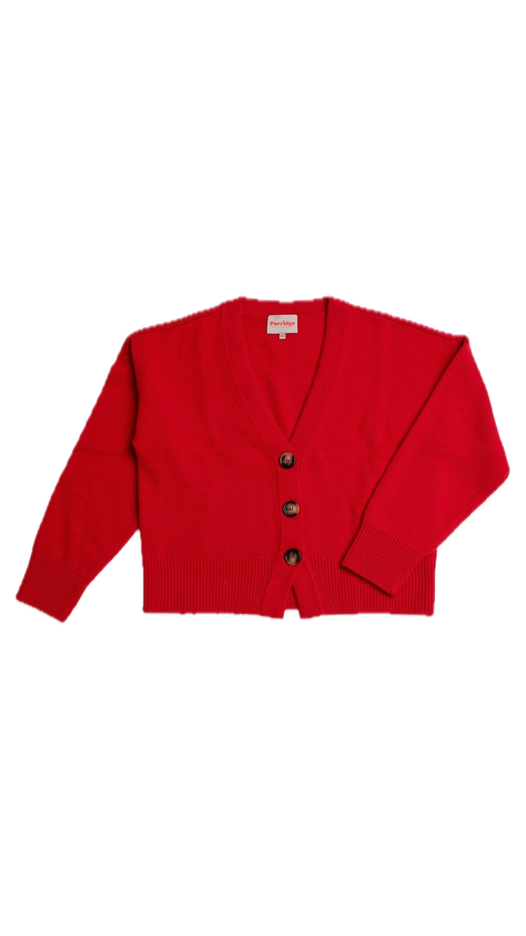 The Lucy V-Neck Cropped Cardigan in Red by Porridge Knitwear is a statement knit designed for warmth, comfort, and timeless style. Crafted from a wool-cashmere blend, it's the perfect mix of softness and structure.