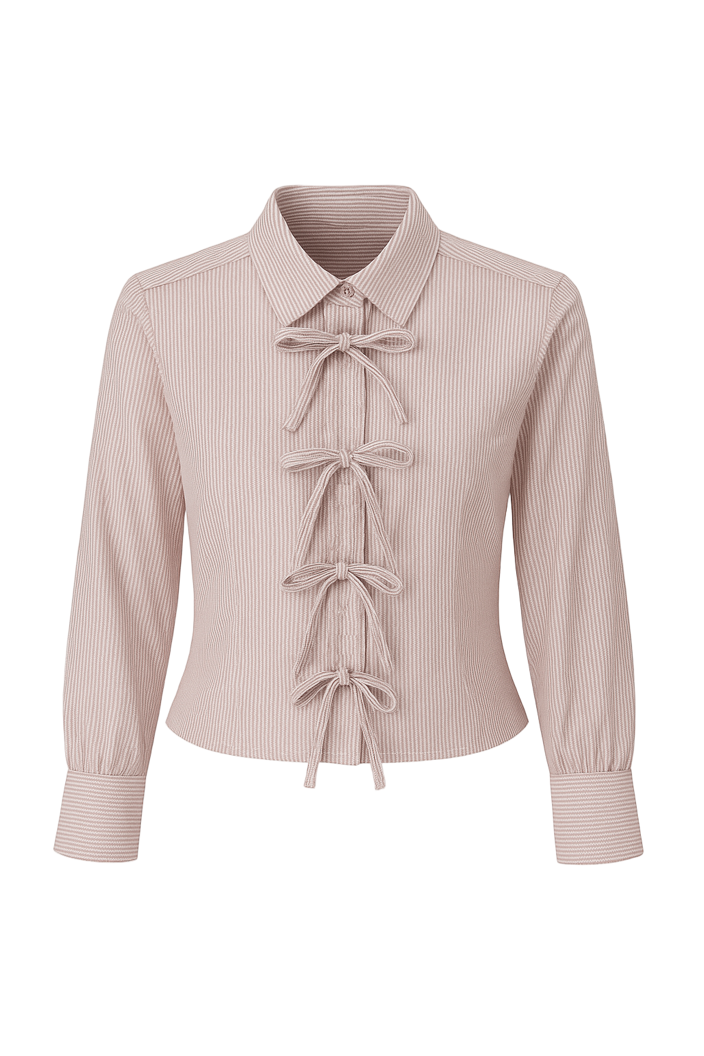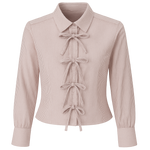 The darted construction defines the waist, while the tie-front fastening adds a feminine twist to the structured shirt shape.