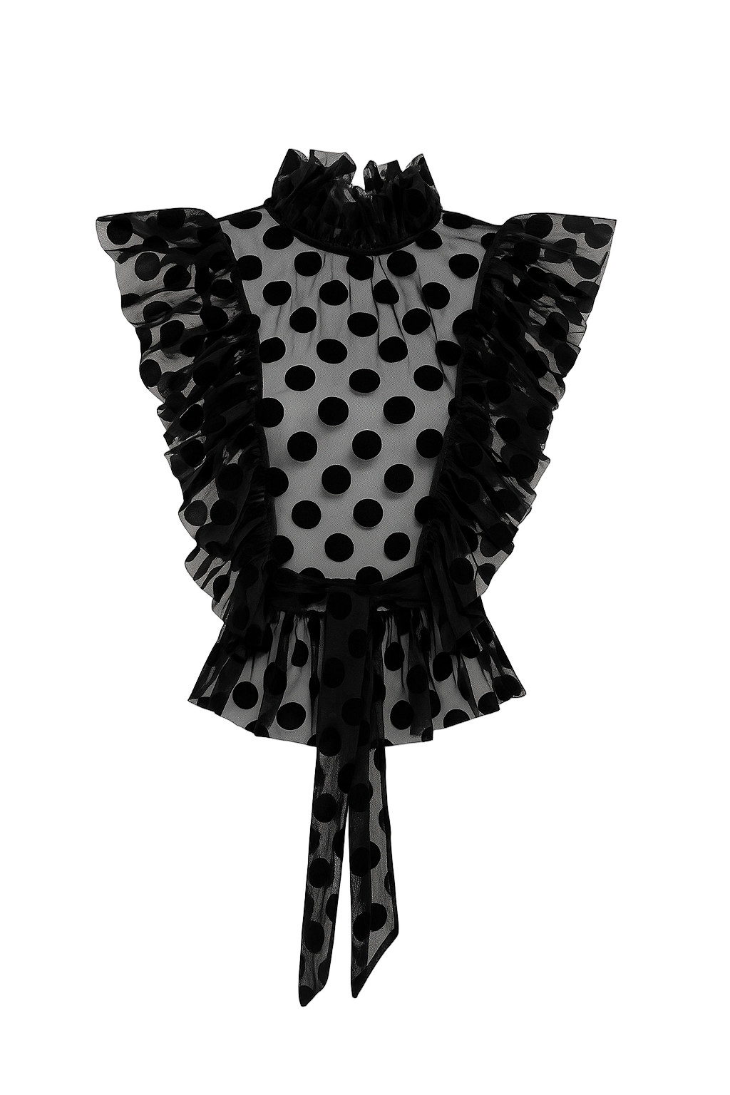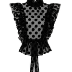 Made from beautifully draped spotted lace, the Spotty Capette features frilled shoulders and a gently flared peplum shape. The transparent lace fabric adds a romantic lightness, balancing femininity and edge in equal measure.