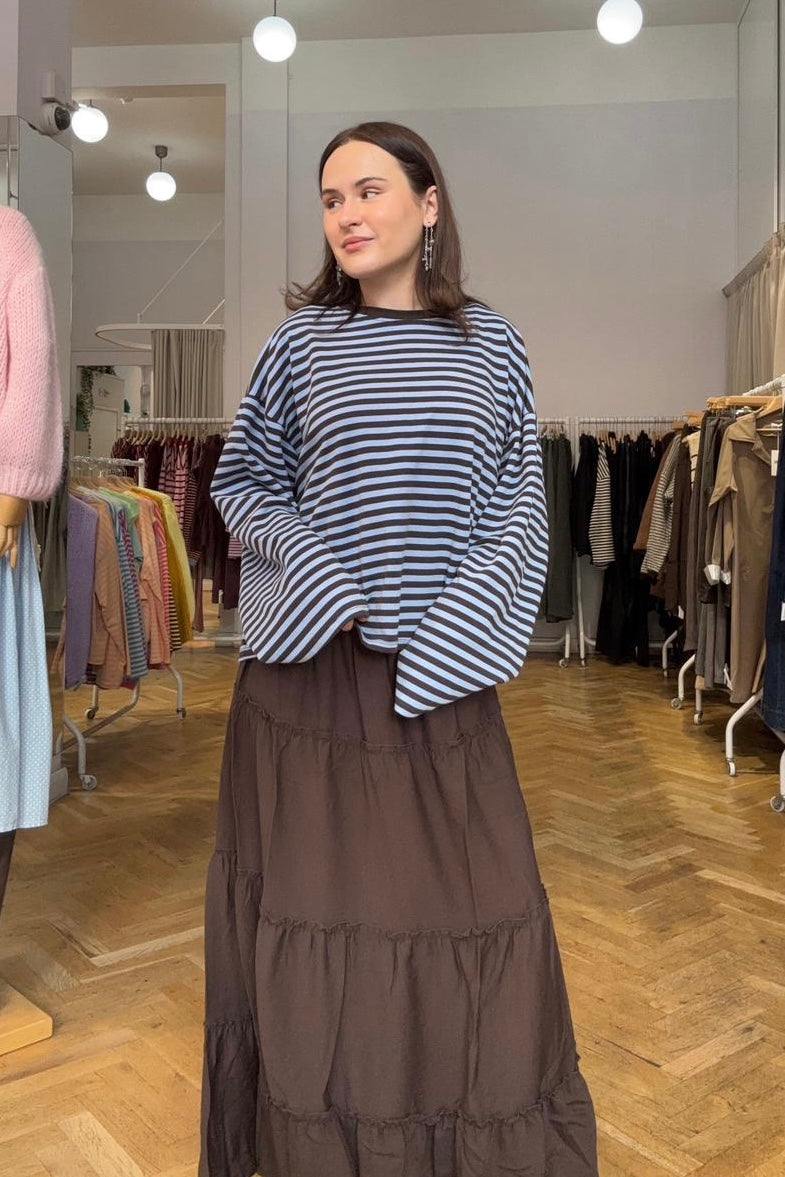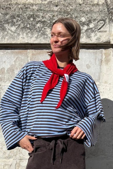 Discover striped T-shirts, knit vests, soft cashmere triangle scarves and modern barrel-leg trousers, each piece combining Nordic practicality with playful design. Clean silhouettes, vibrant colours and thoughtful details create clothing that feels both distinctive and effortless.