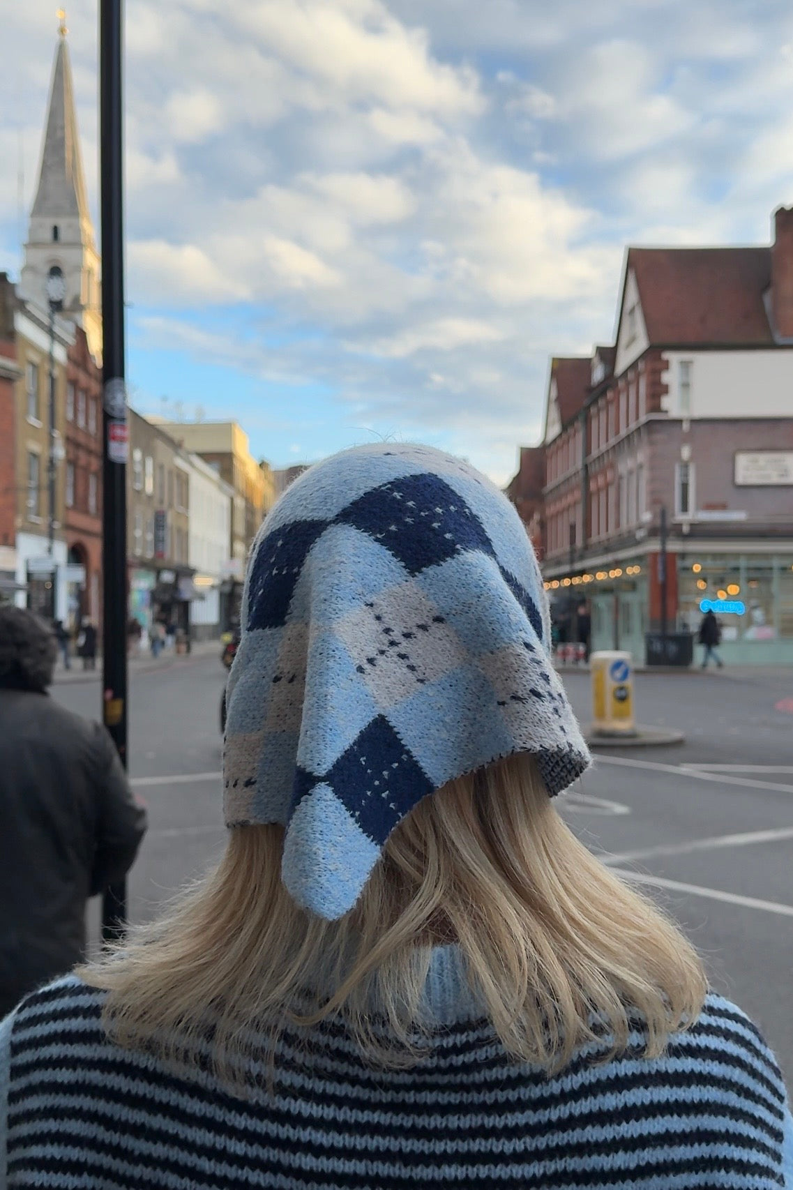 Argyle Triangle Scarf in Blue