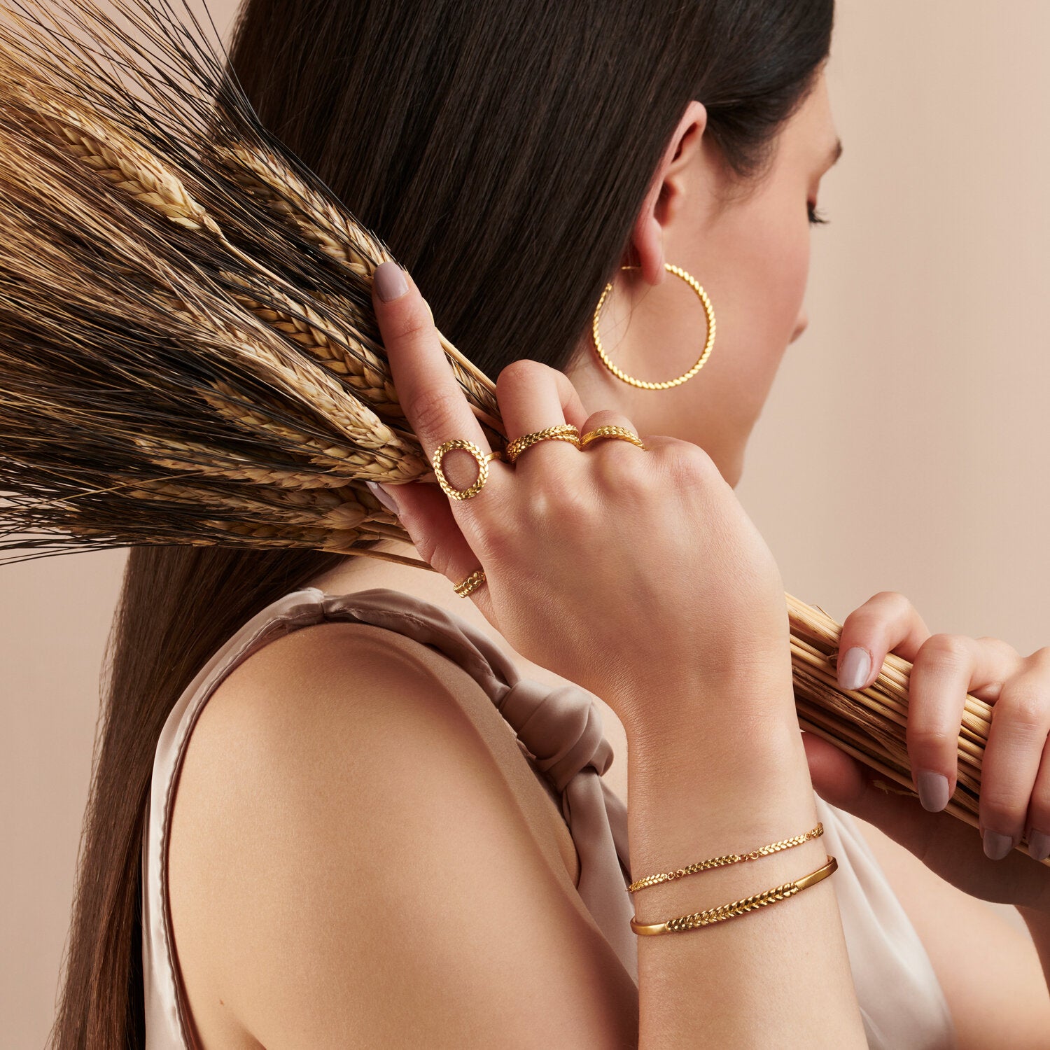 The Demeter Cuff is a contemporary yet classic design to go with any outfit. It is made from sterling silver with a gold vermeil finish and measures 4mm in width with a 1” opening. it is available in 3 diameters:
