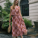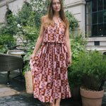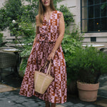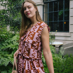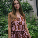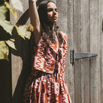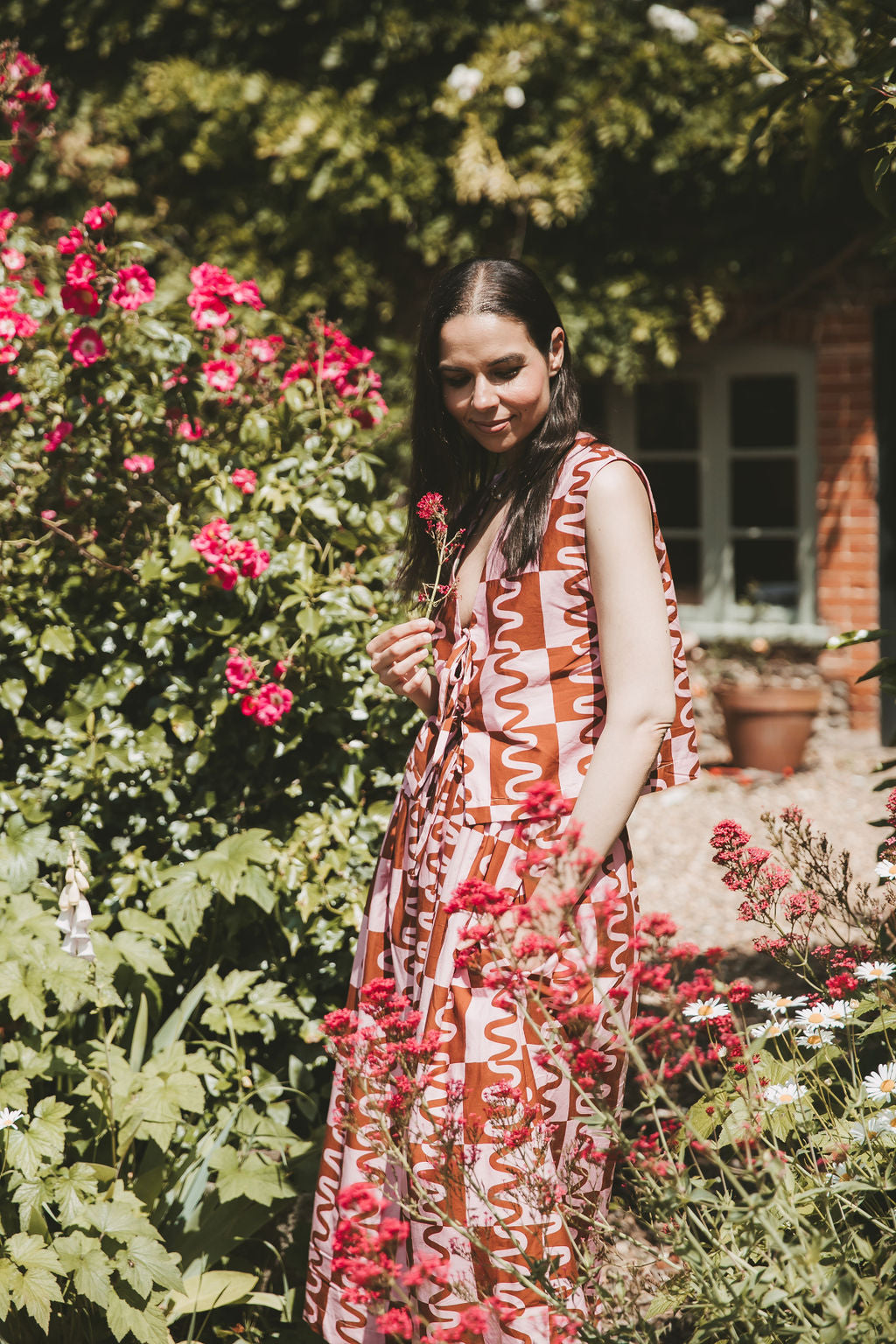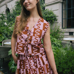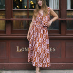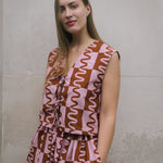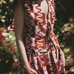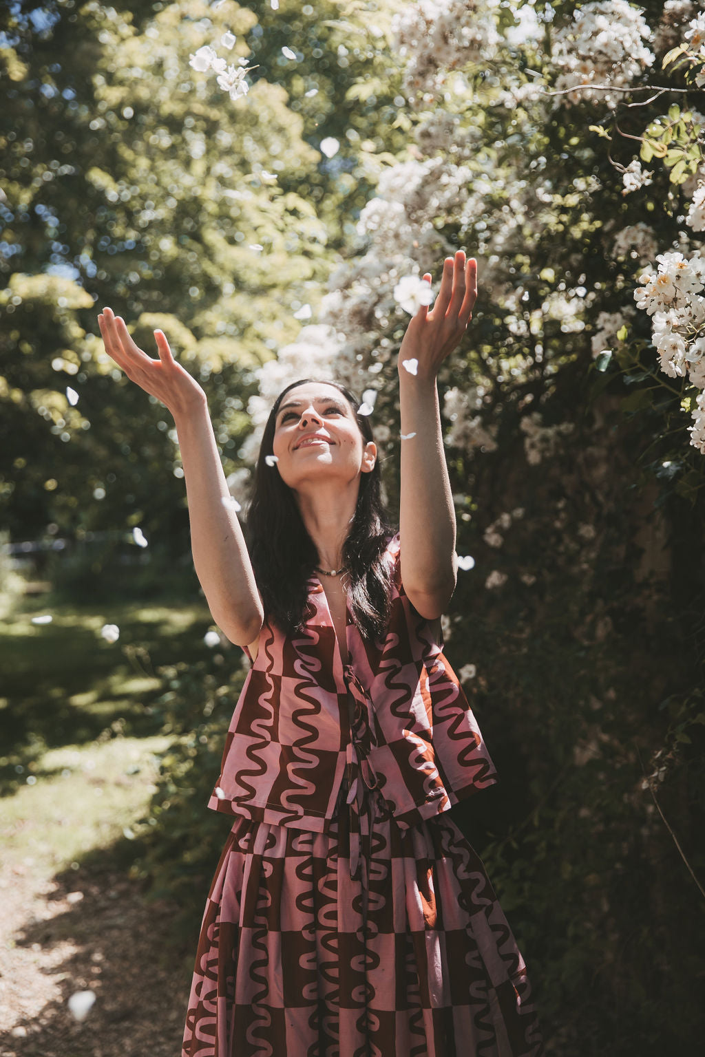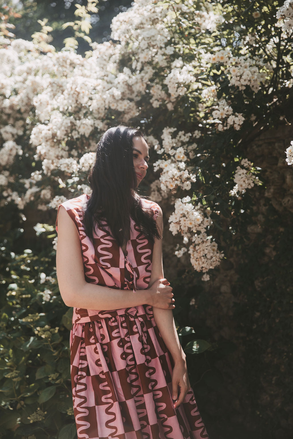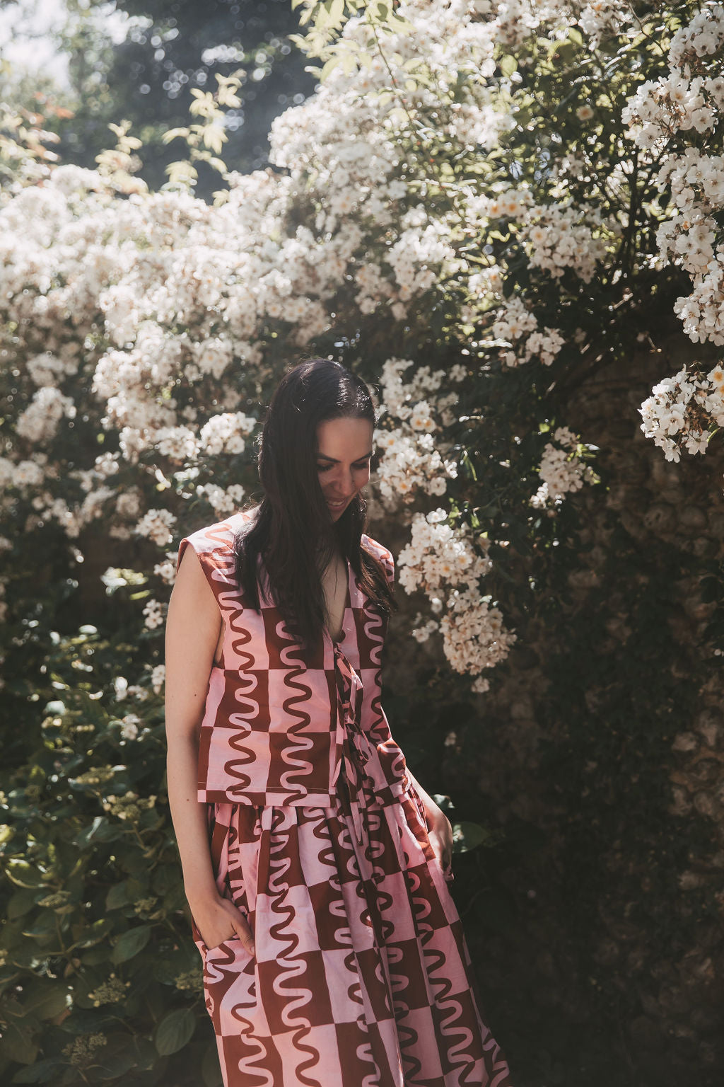 The Gracie New Wave Bow Vest is handmade in London from deadstock 100% cotton chequerboard pink and brown fabric. This versatile tie front top makes a great layering piece or can be worn on its own as a beautiful high summer top.