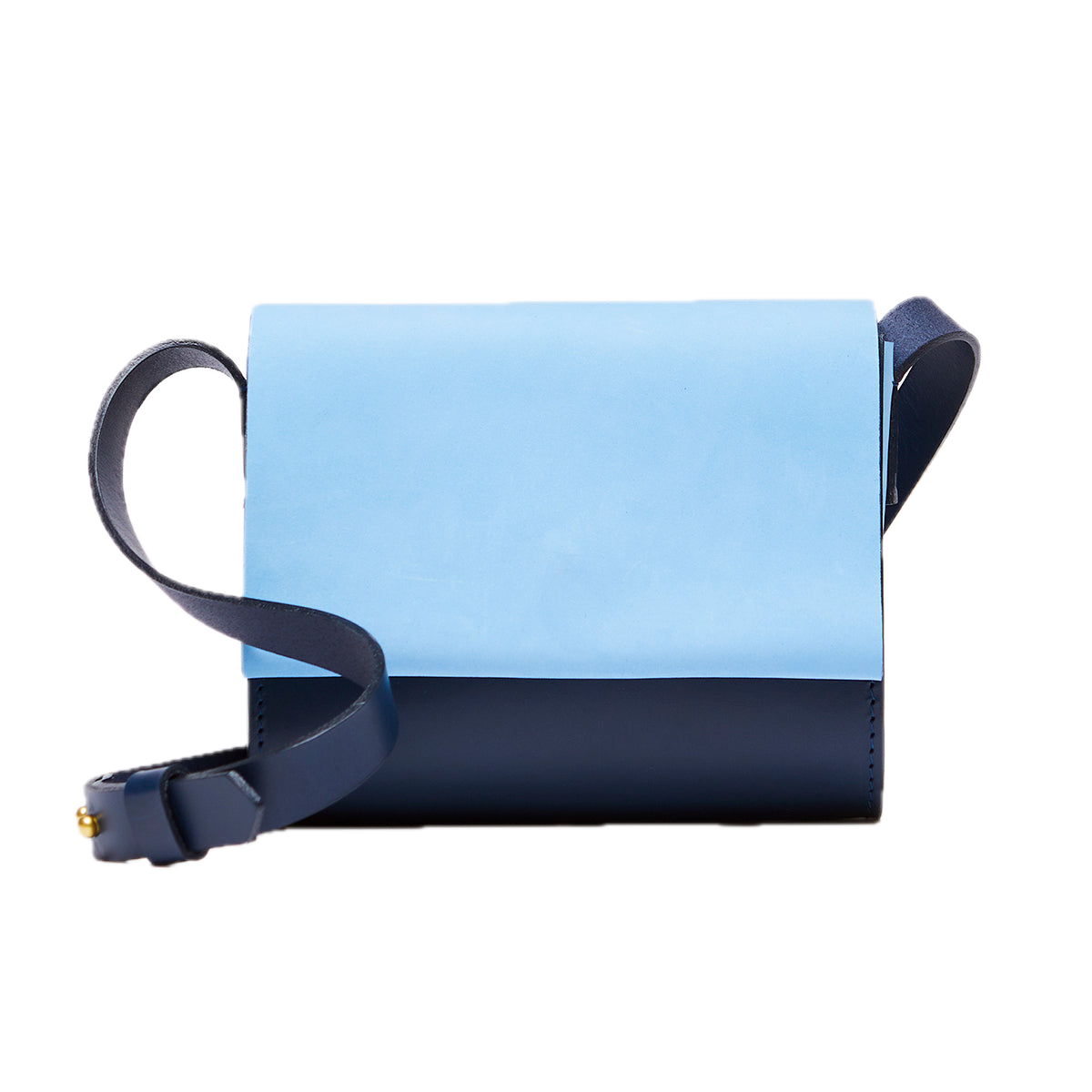 Meet the Mini Leather Bag from LPOL — a thoughtfully designed piece that blends practicality with refined elegance. This two-tone blue and navy leather handbag is crafted from chrome-free tanned nubuck and leather, offering a soft, durable finish in a perfectly compact form.