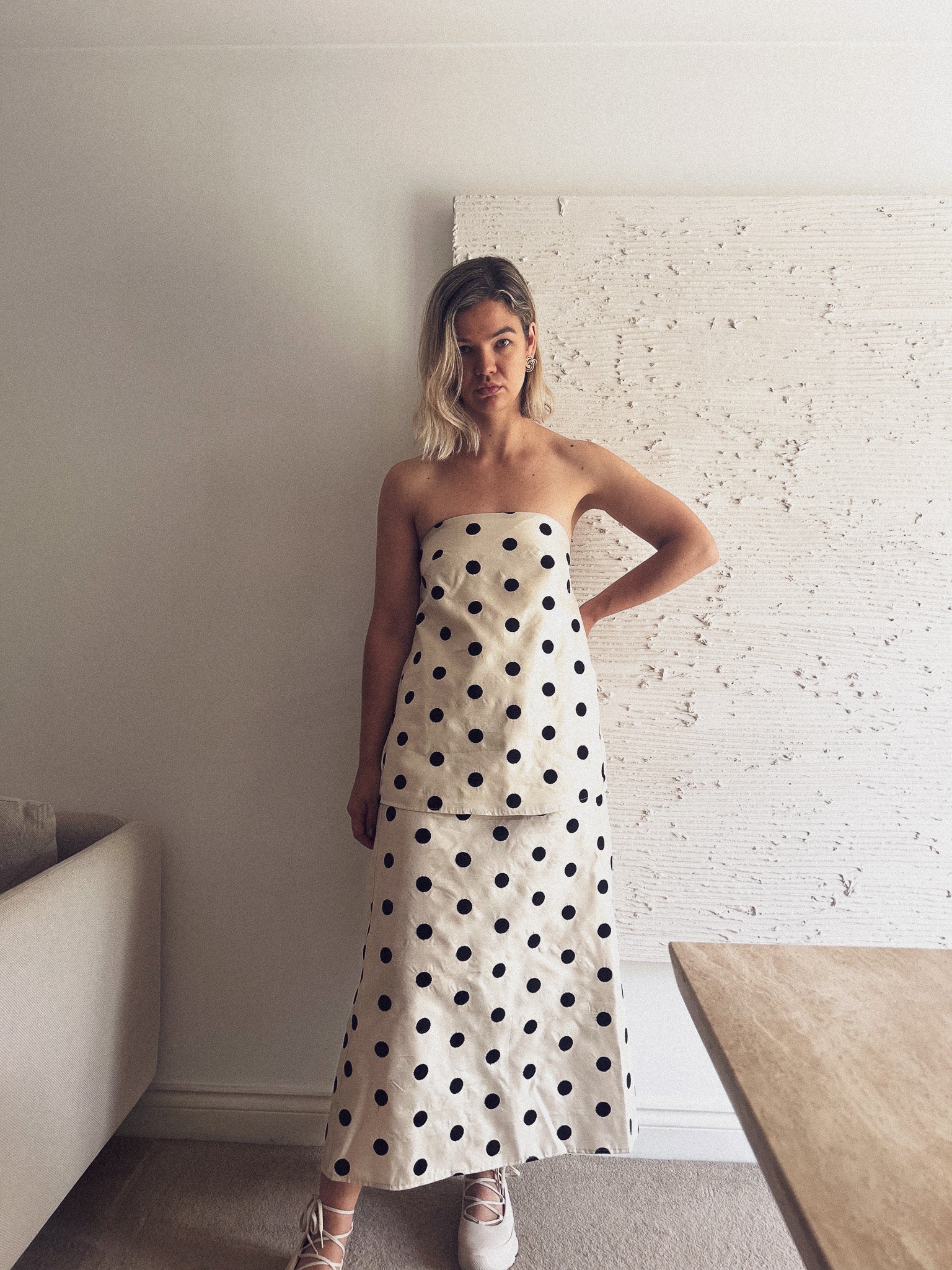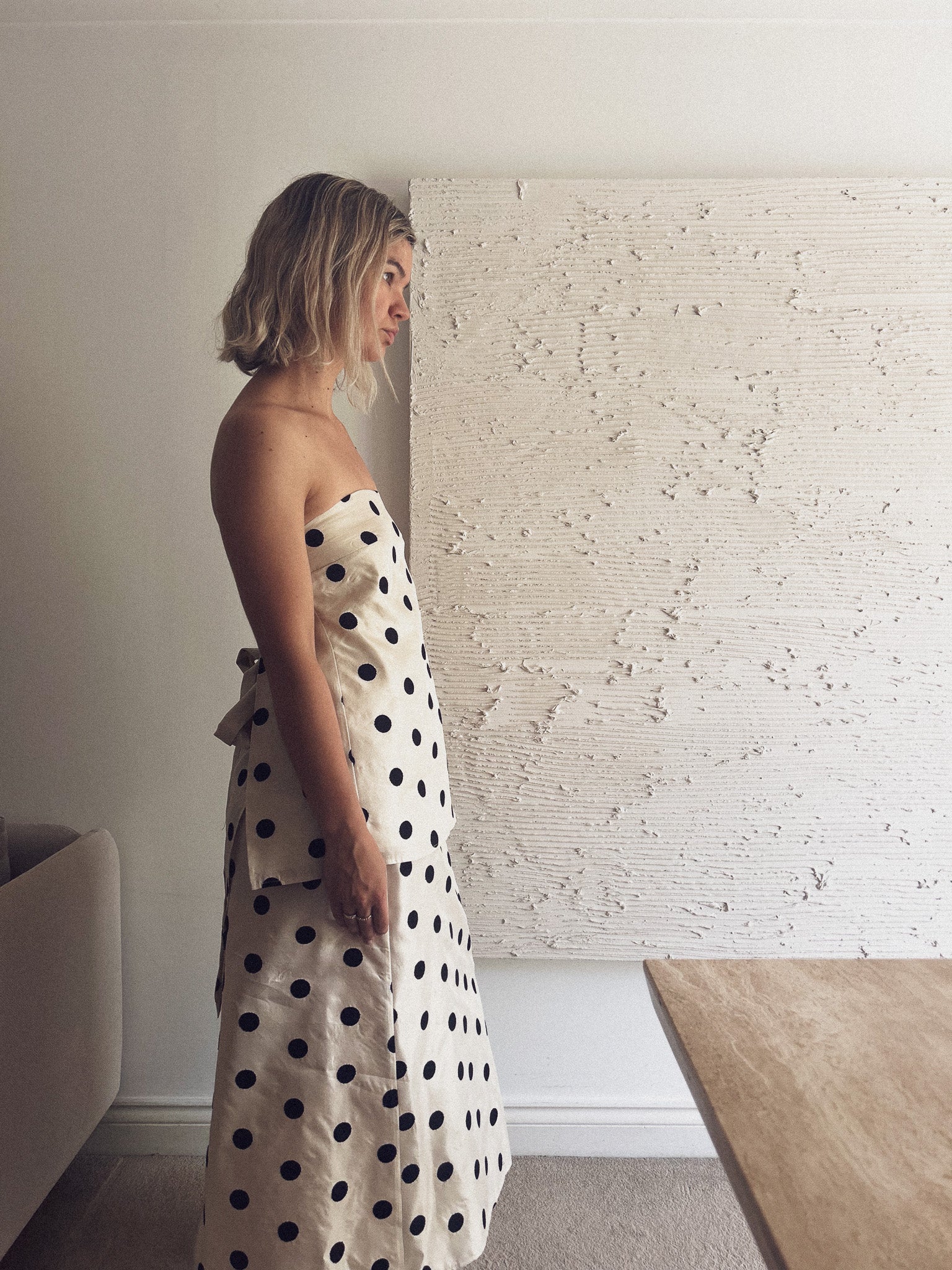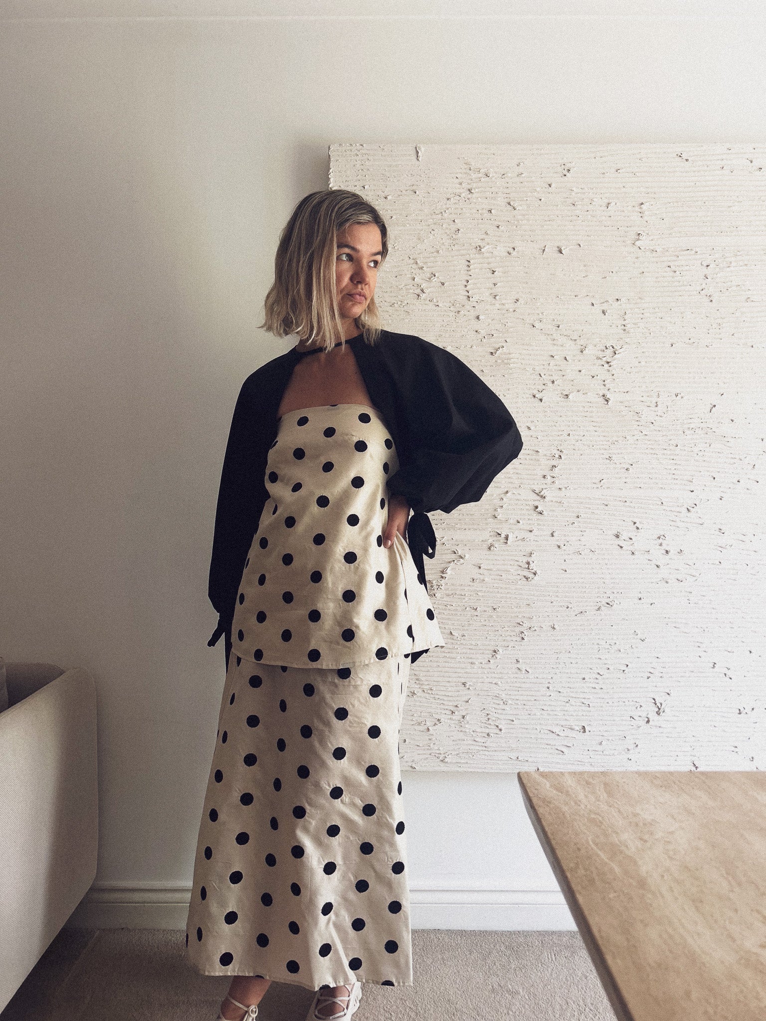 Crafted from luxurious silk jacquard with subtle lurex for a gentle sheen, the Clio Top brings new life to existing materials, supporting sustainable and thoughtful fashion.