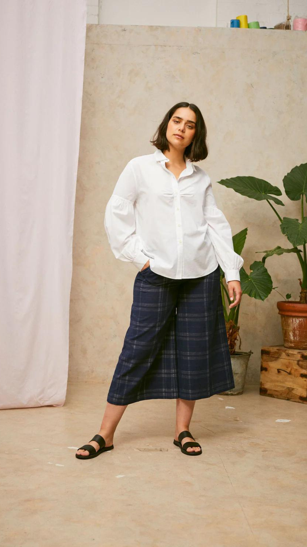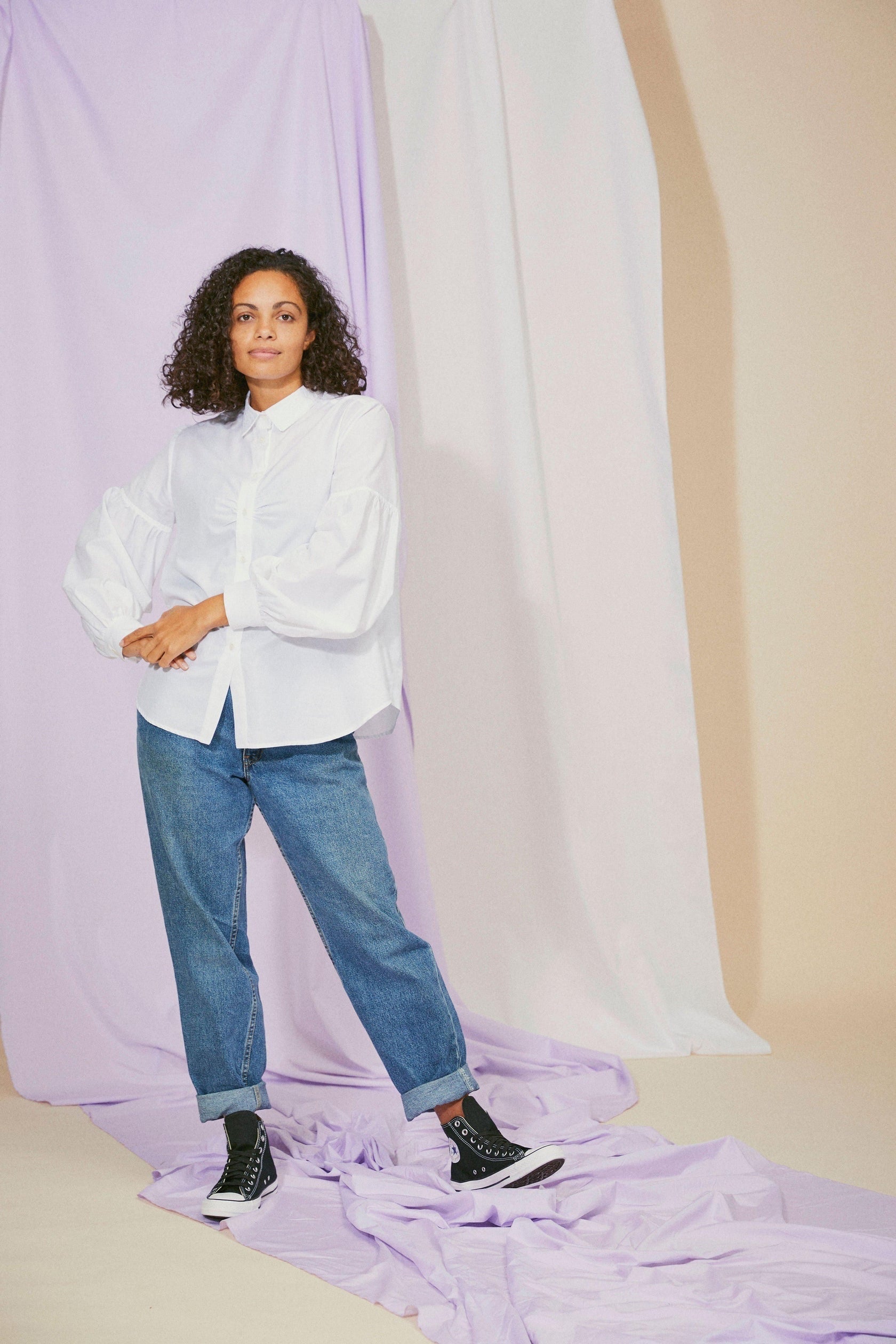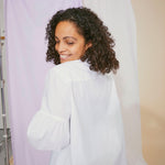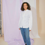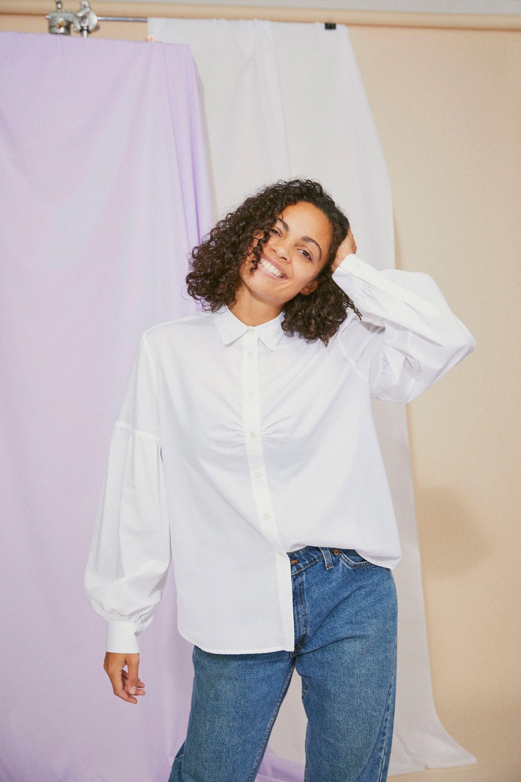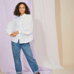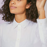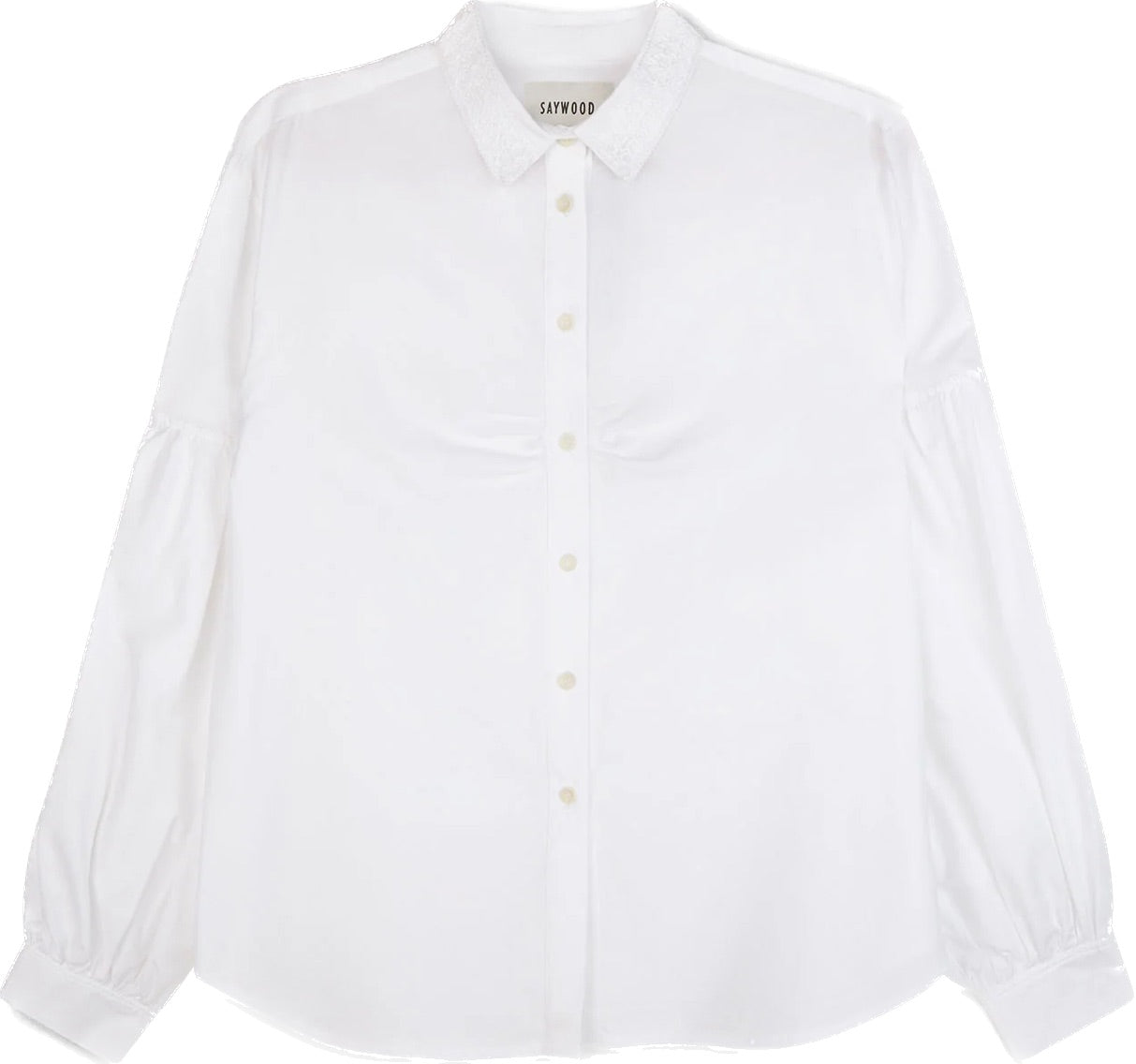 A true wear-forever piece, the Edi Volume Sleeve Shirt in White Cotton Bamboo by Saywood is a feminine take on classic white shirting. Cut with a soft gathering at the bust to flatter all shapes, its neat silhouette is contrasted with dramatic full sleeves and lace detailing on the collars. Made from Supima cotton blended with environmentally friendlier bamboo, and finished with natural cream corozo buttons, it’s an essential that can be styled up or down.