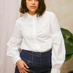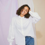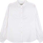 Edi Volume Sleeve Shirt in White Cotton Bamboo