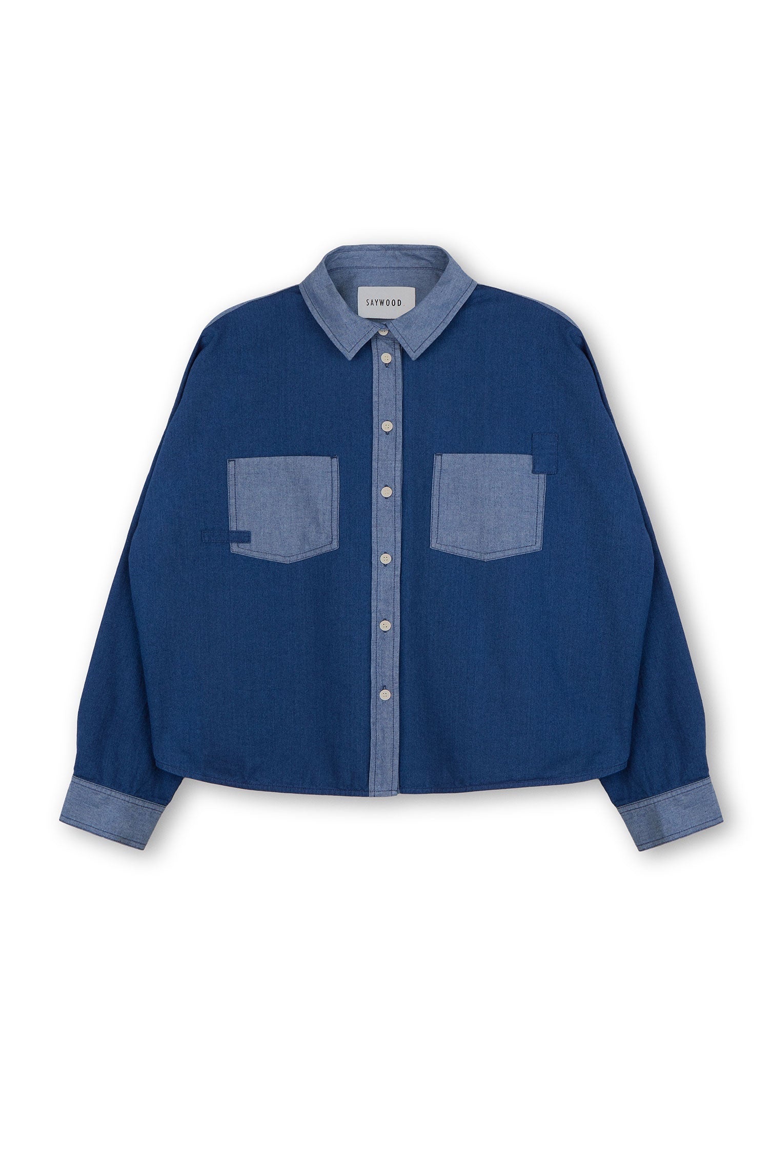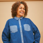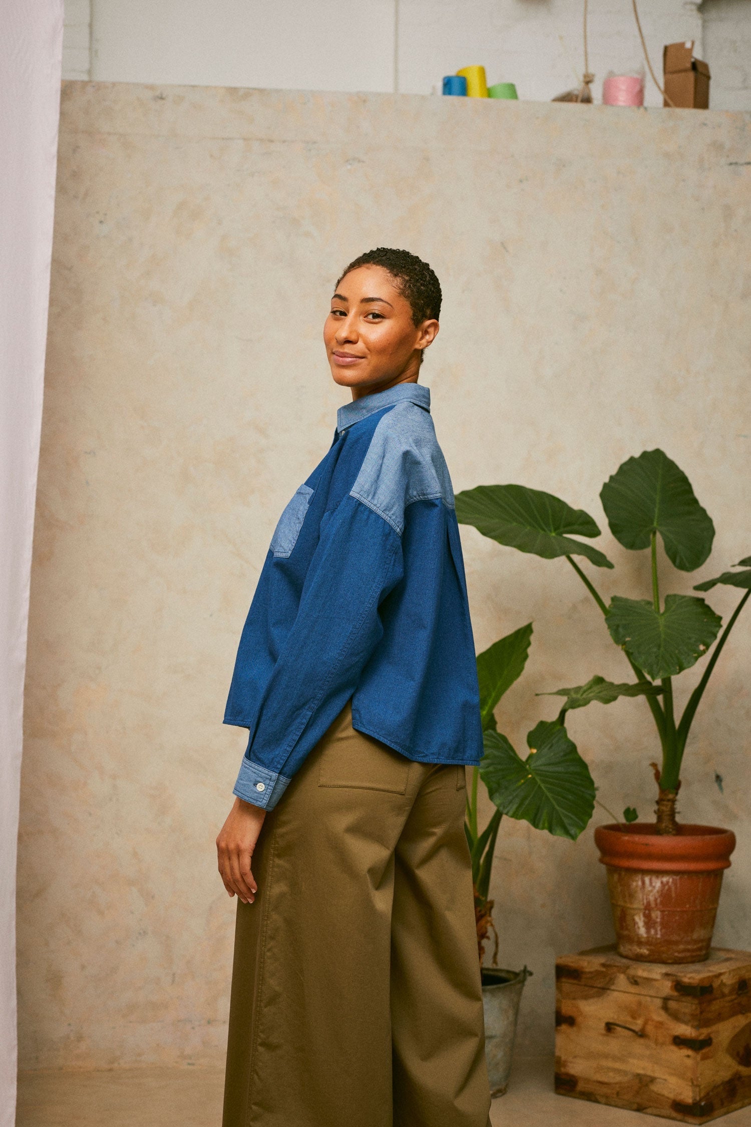 Lela Patchwork Boxy Shirt in Japanese Denim
