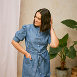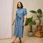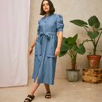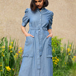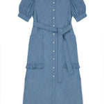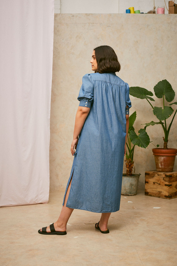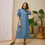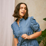 Rosa Puff Sleeve Shirtdress in Blue Light Wash Japanese Denim