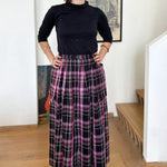 Ruth Check Midi Skirt in Berry & Black by Indilisi