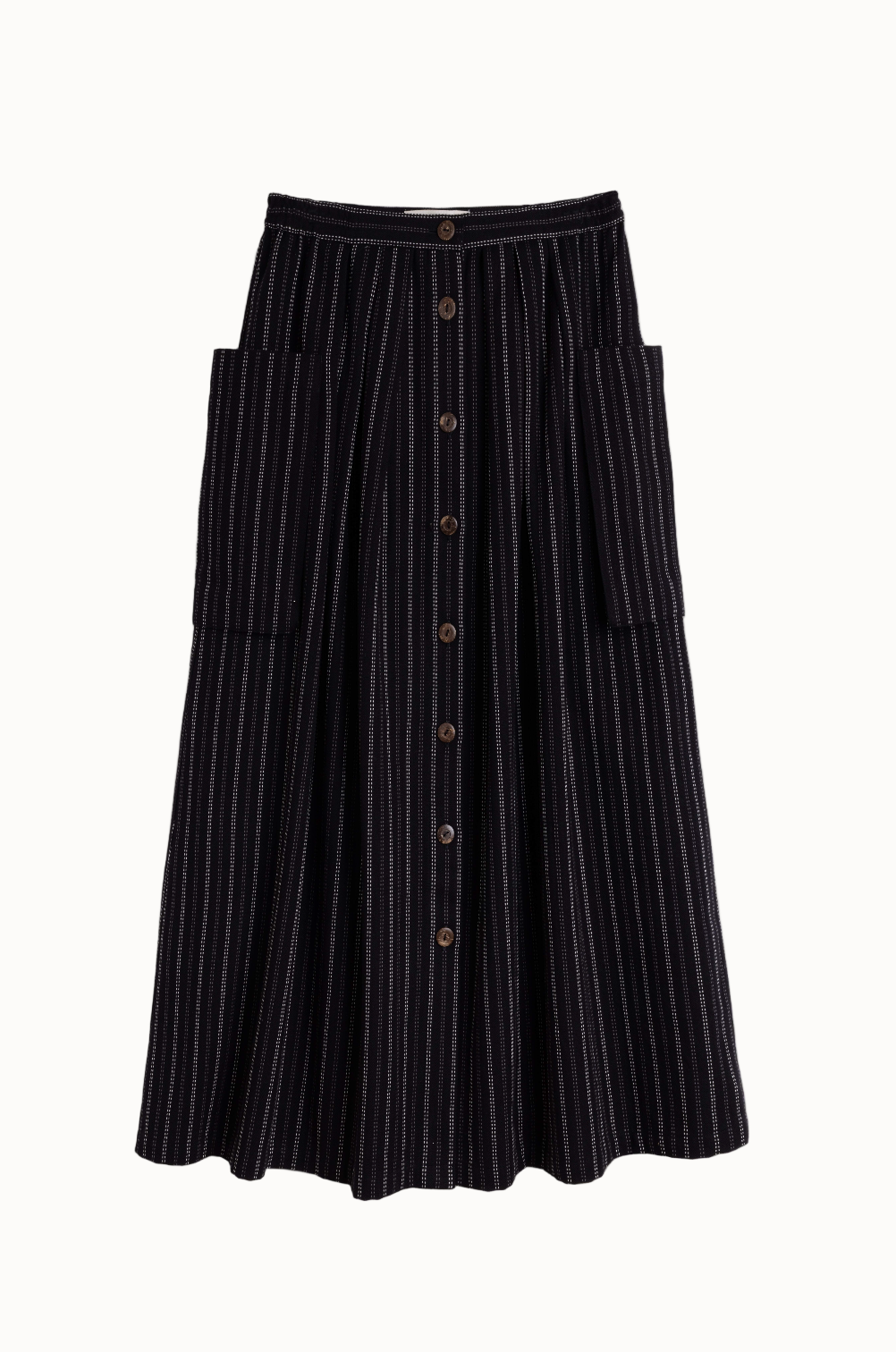 Ruth Stripe Midi Skirt in Black & White Stripe