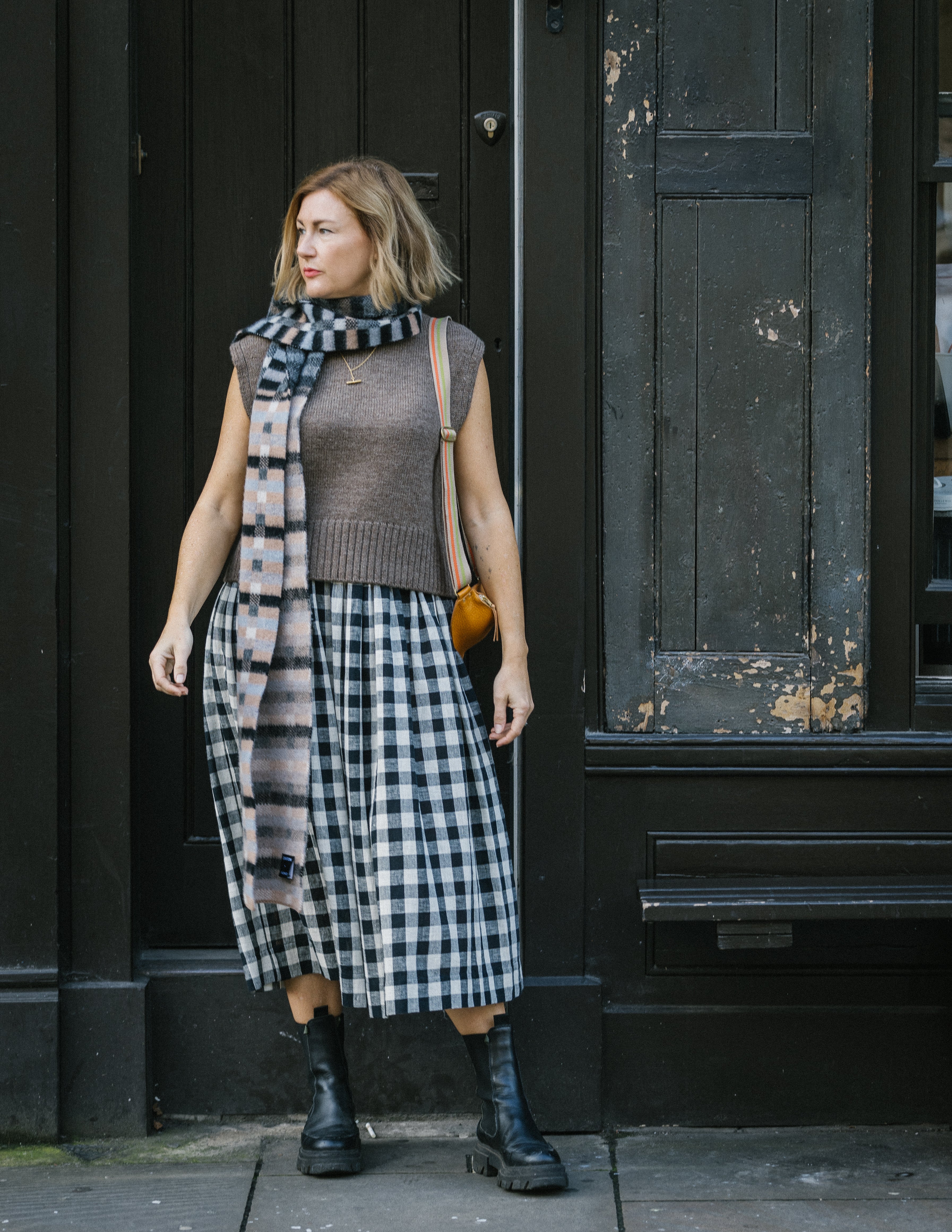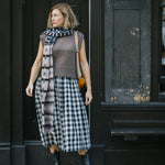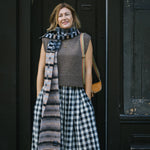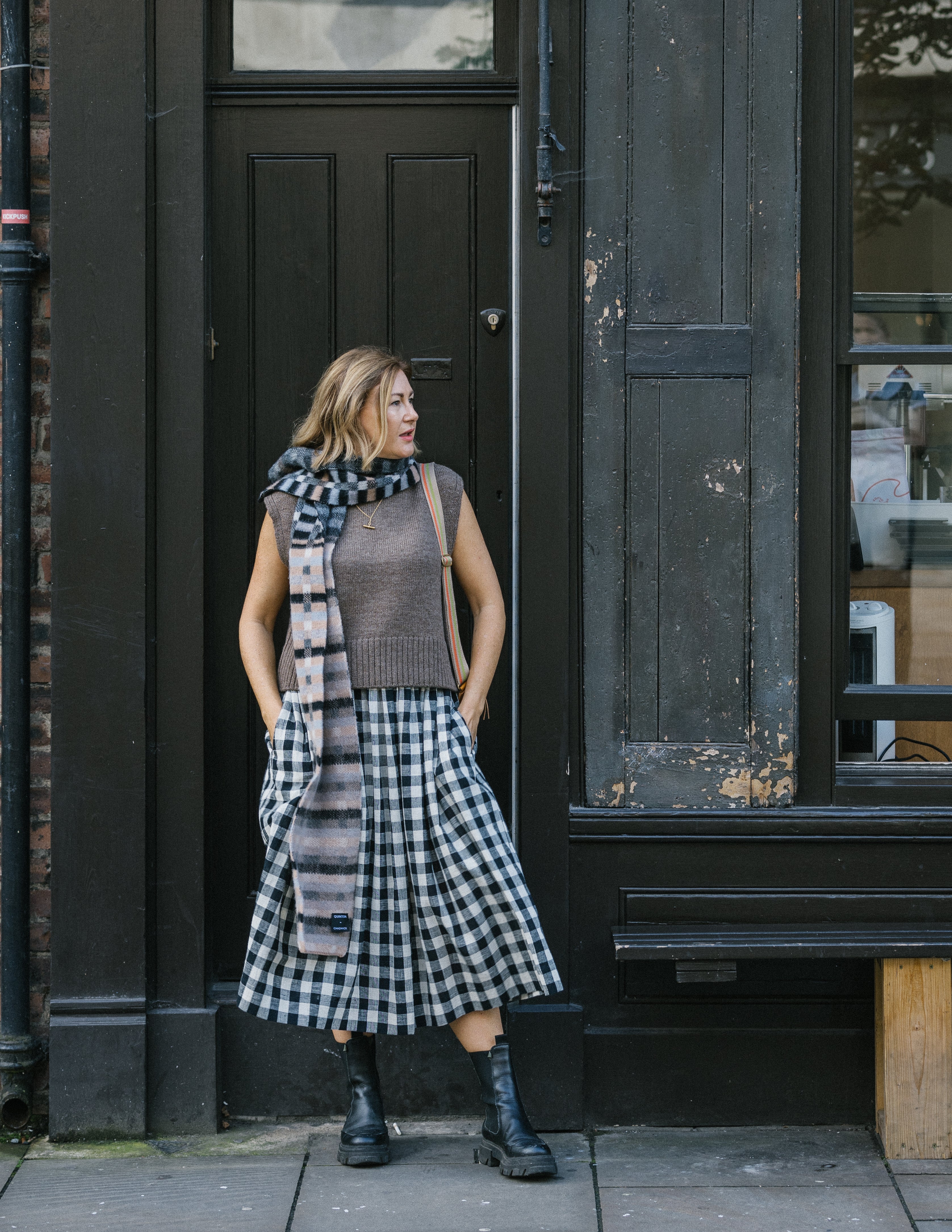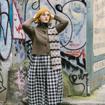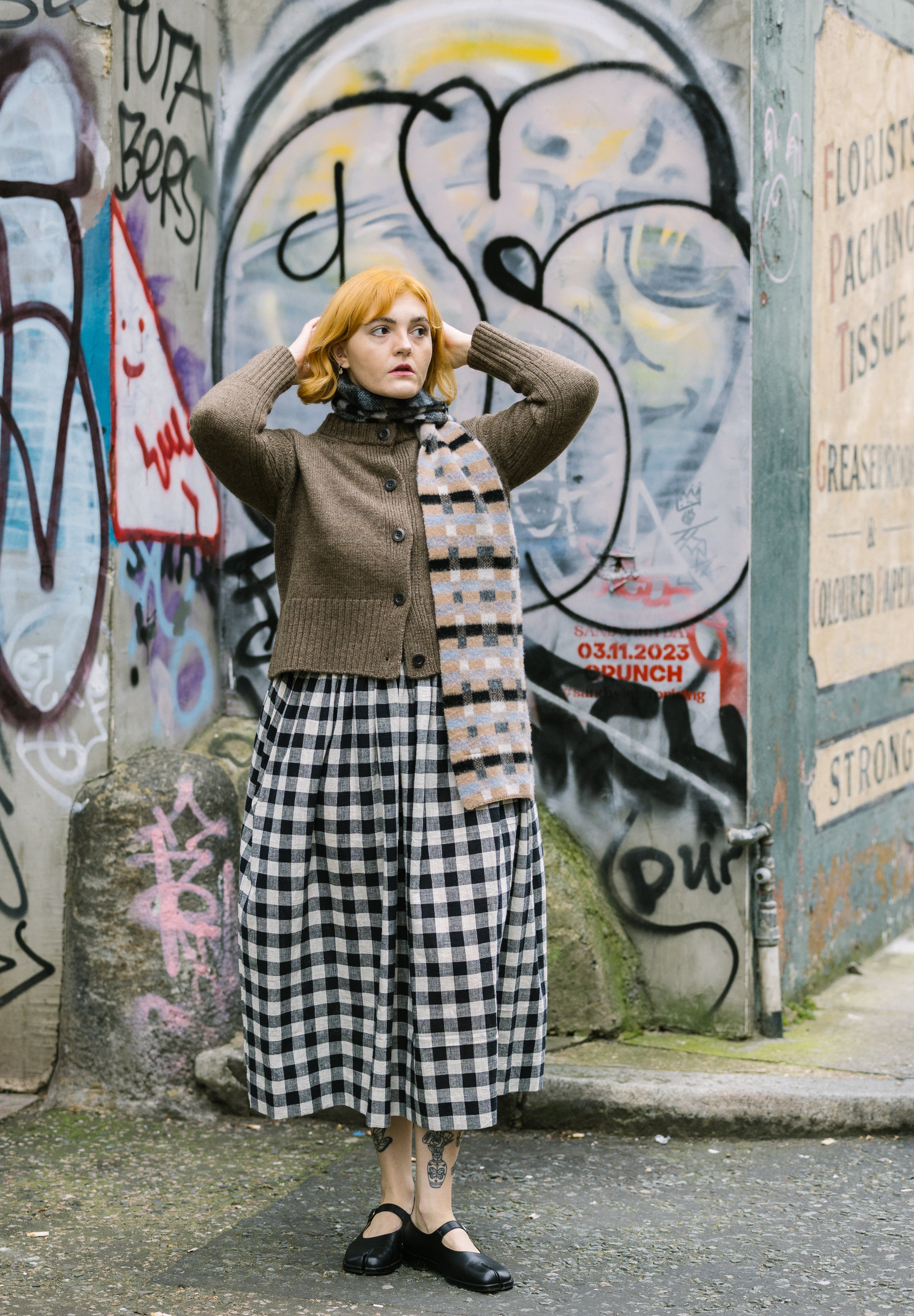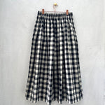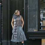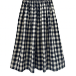 The Tina Skirt in Black and White Gingham is a contemporary take on a timeless style. Made in the UK from handloomed organic kala cotton, this full gathered skirt offers ease, movement, and sustainable craftsmanship.