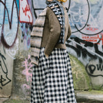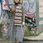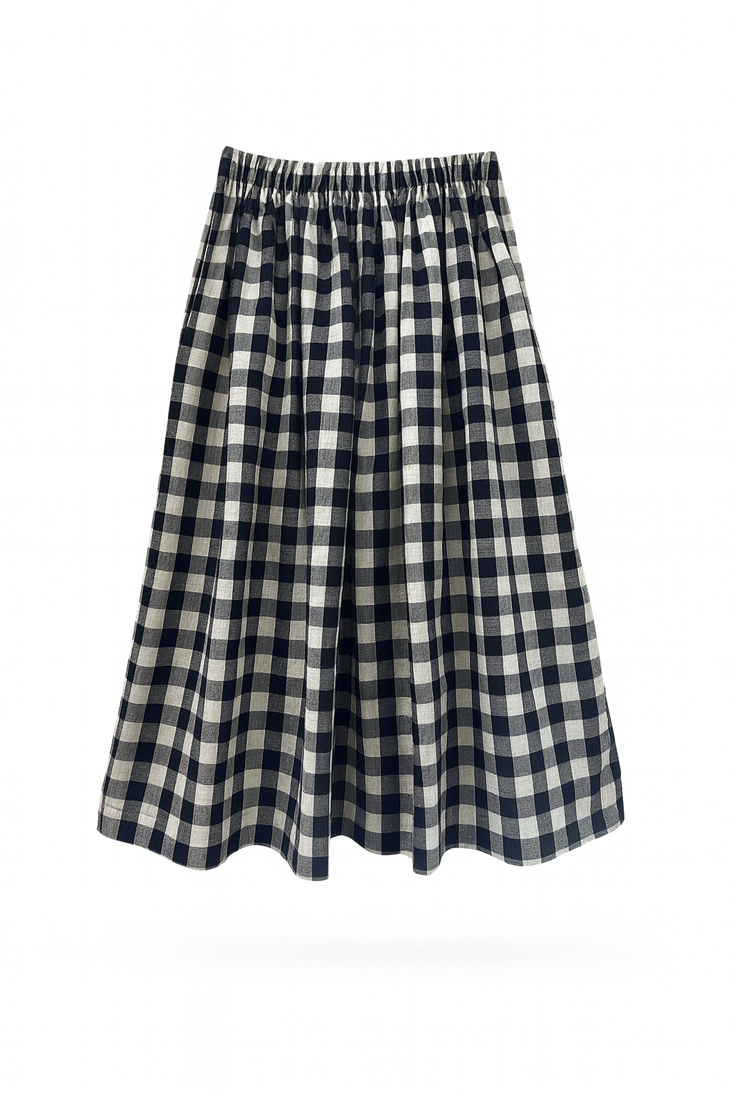 Crafted from 100% handloomed organic kala cotton, this skirt features a classic black and white gingham pattern. A breathable, durable fabric that celebrates traditional weaving and conscious production.