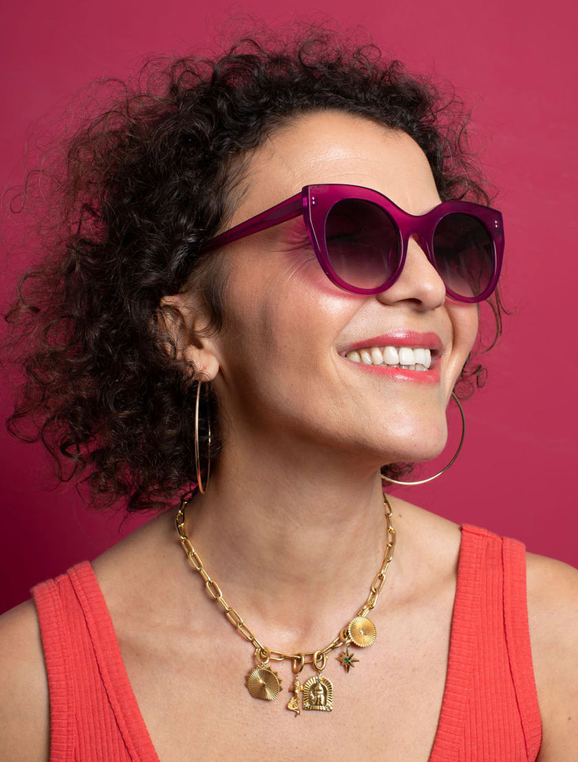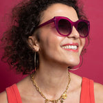 The Lily Round Sunglasses by Zoe de Pass bring together easy wearability and modern elegance. With a smooth round frame and subtle cat-eye corners, Lily offers a flattering shape that suits all faces, making them a timeless everyday choice. Crafted in a bold magenta acetate, they add a vibrant pop of colour to any outfit.