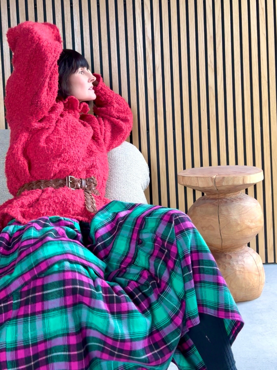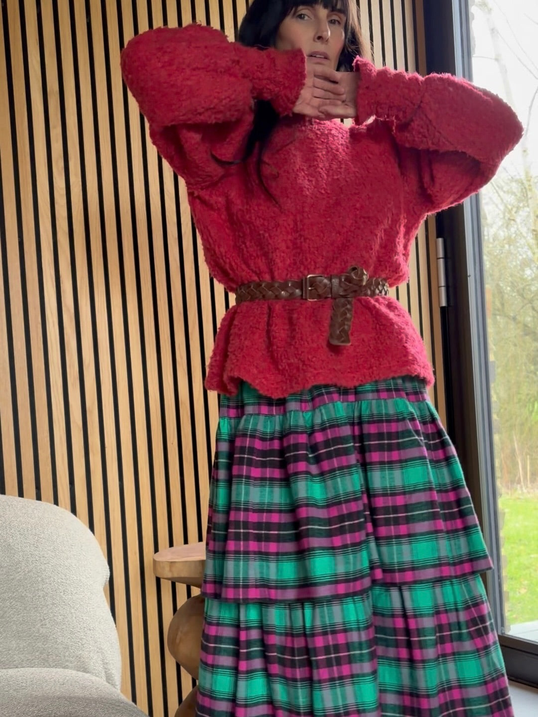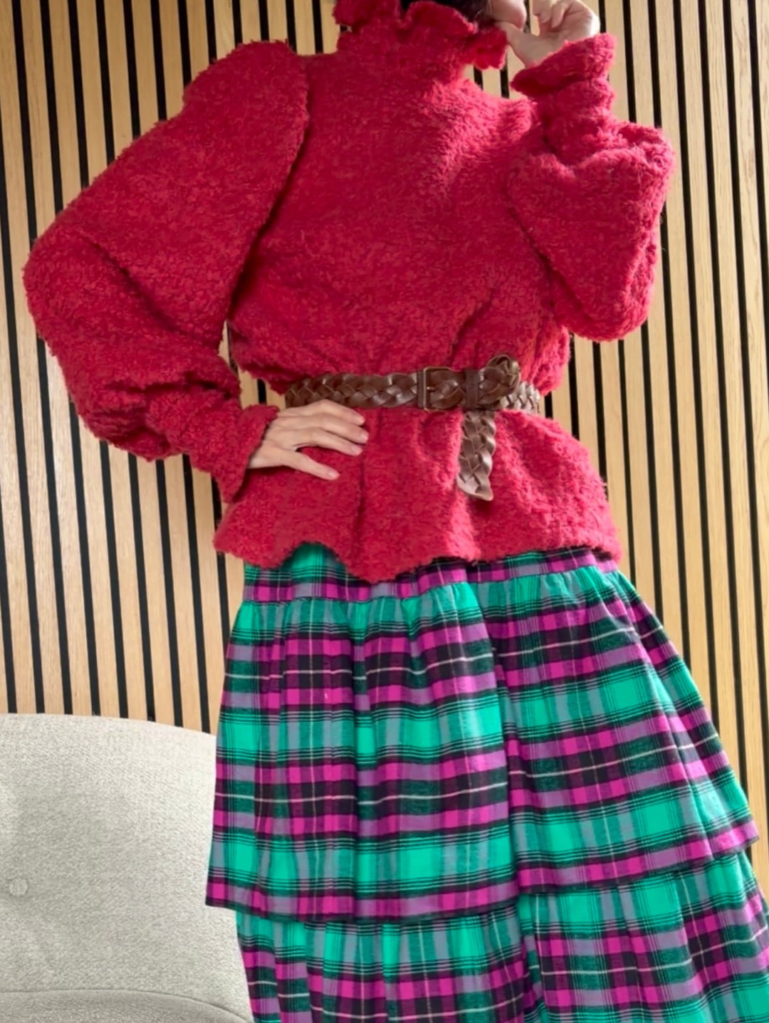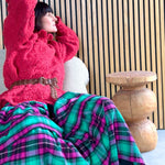 The Lottie Skirt in Neon Tartan by Minkie Studio is a beautifully crafted tiered midi skirt made in the UK from reclaimed deadstock cotton. Its soft-handle fabric and rich green check make it a timeless wardrobe favourite with a playful twist.