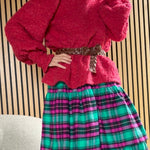 Featuring two full tiers and a subtle contrast tartan panel visible in movement, the Lottie Skirt brings depth and texture to a classic heritage check. The soft brushed fabric offers comfort and drape, perfect for year-round wear.