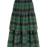 The Lottie Skirt in Green Tartan by Minkie Studio is a beautifully crafted tiered midi skirt made in the UK from reclaimed deadstock cotton. Its soft-handle fabric and rich green check make it a timeless wardrobe favourite with a playful twist.