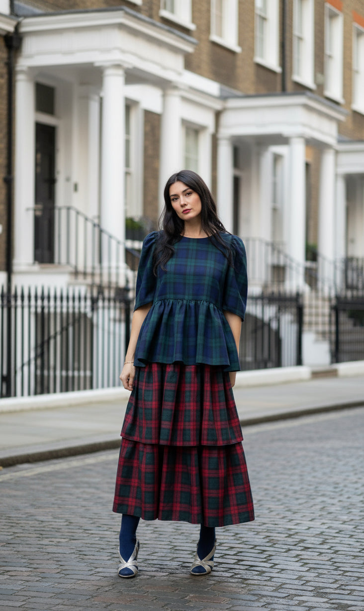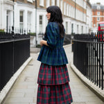 This soft handle classic tartan has the most beautiful colours in the double tiered skirt with a contrast black watch tartan in between the layers just visible with bit of movement! A perfect long midi length with a comfortable elastic waist, would look great striding through the hills with the dogs!! Also contrasts beautifully with the Tallulah shirt.
