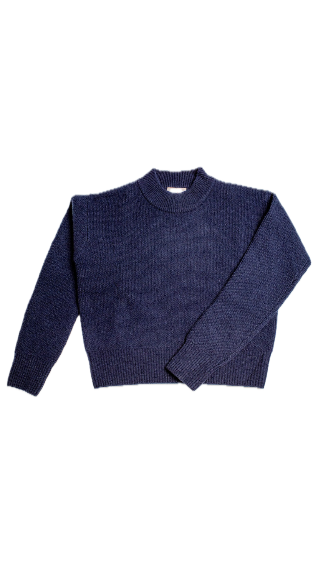 Amy High Neck Cropped Jumper in Navy by Porridge Knitwear