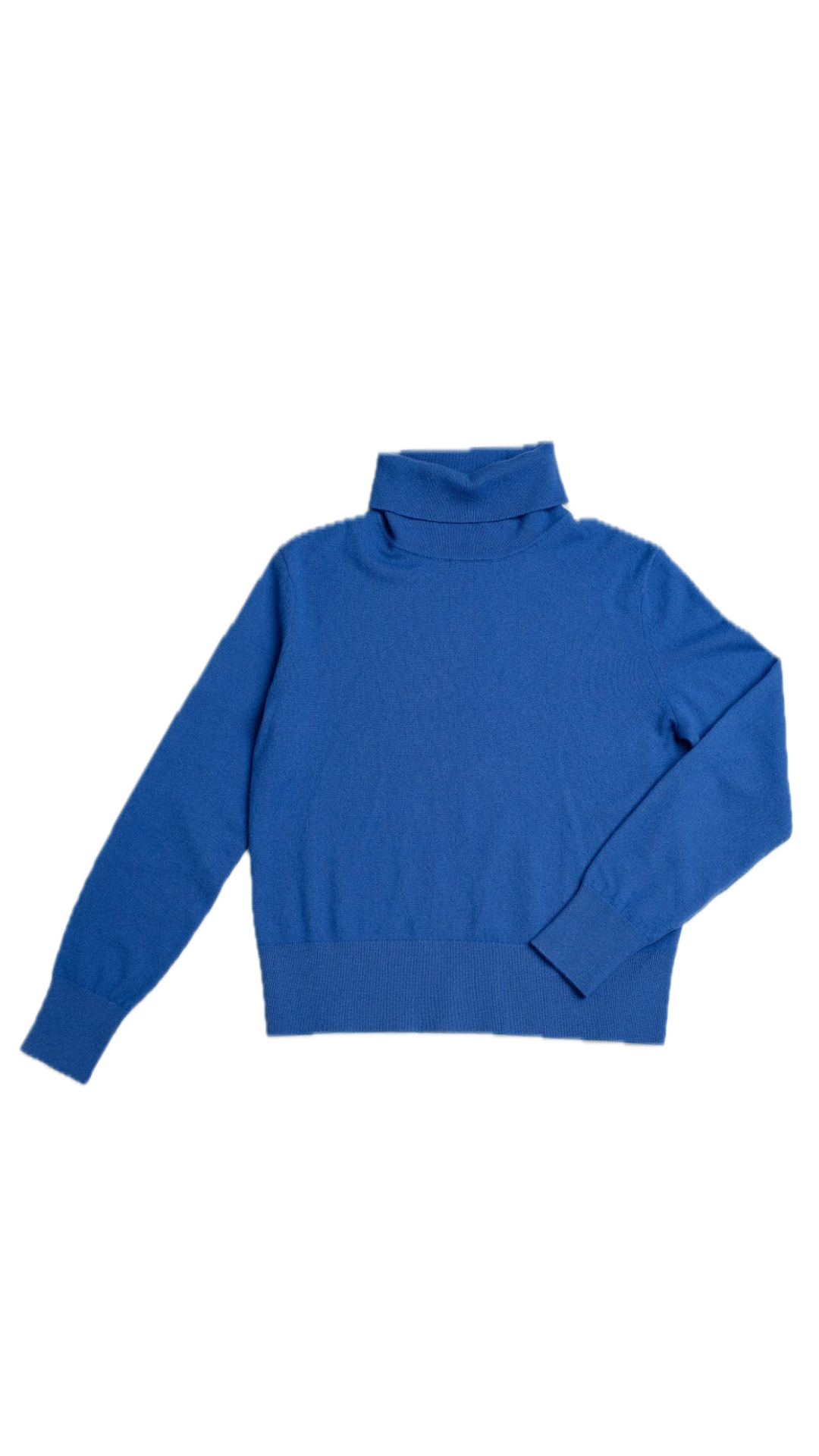 The Anne Polo Neck Cropped Jumper in Blue by Porridge Knitwear is an elegant, vintage-inspired knit designed for timeless style and comfort. Crafted in a soft Chelsea blue shade, it's a refined addition to any wardrobe.