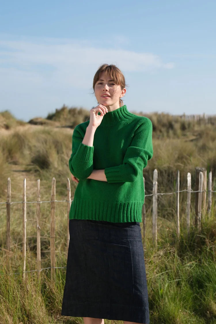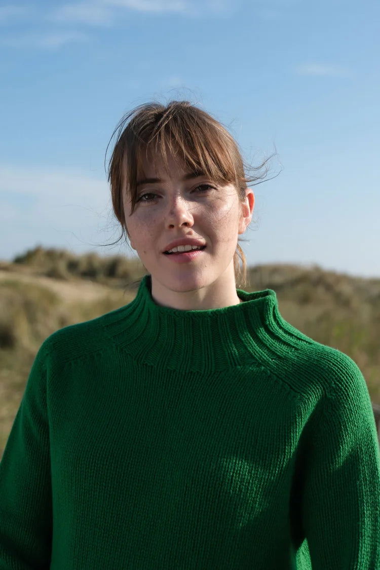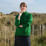 The Chunky Swing Sweater with Split Hem in Bright Green is a super soft oversized jumper crafted from 100% extra fine lambswool. This vibrant green knit sweater adds warmth and colour to your winter wardrobe, designed to be worn year after year.