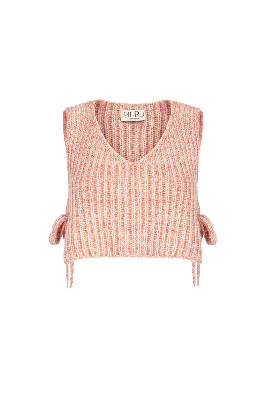 No two knit vests are ever the same, thanks to the plant-dyed coral yarn that gives each piece its distinctive finish. Carefully handmade in England with traditional techniques.
