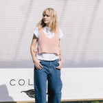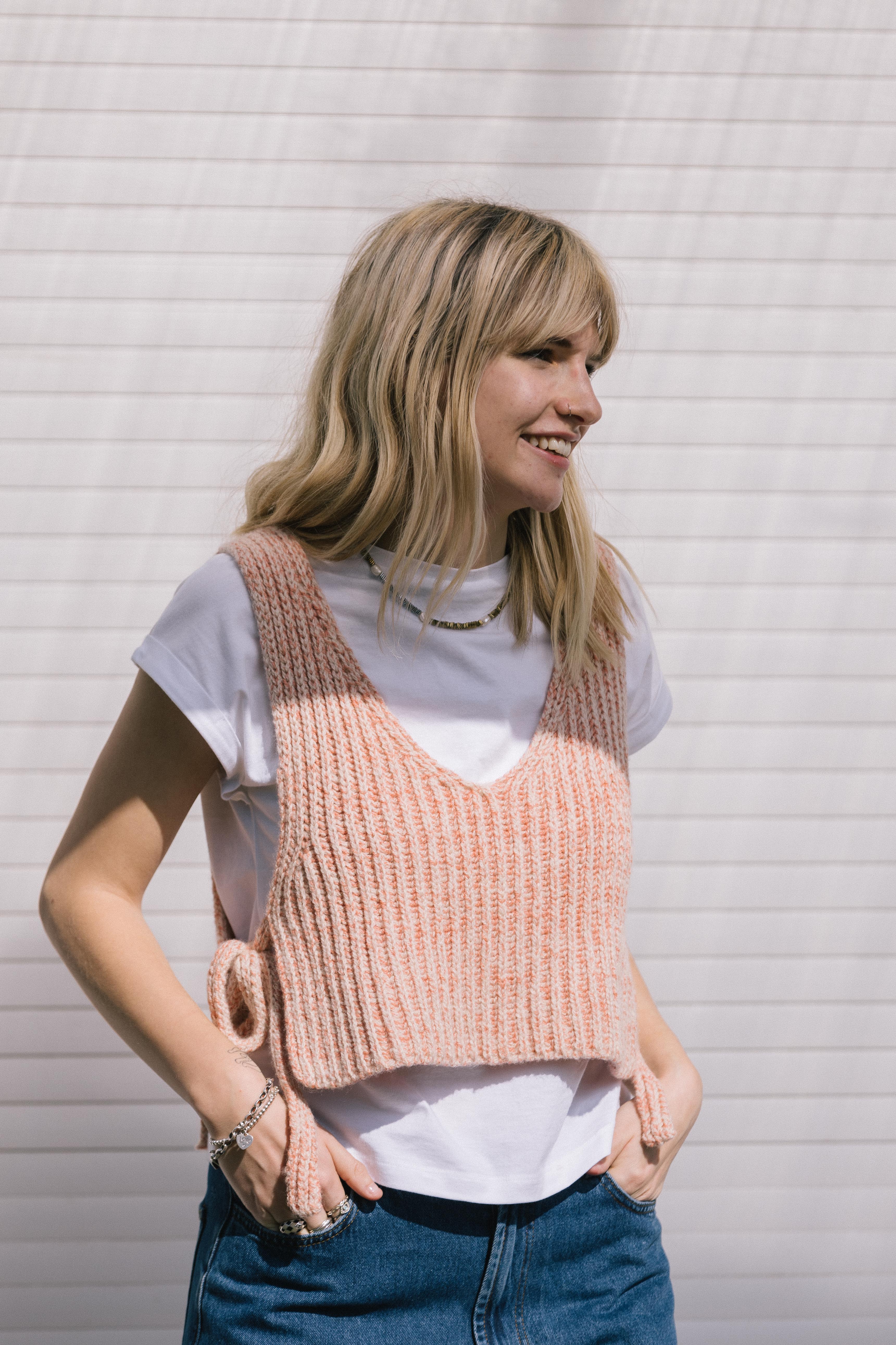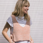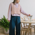 The Eccleston Knit Tabard in Coral is the perfect autumn layering piece, crafted in 100% traceable British wool. This wool vest is handmade in England using soft Bluefaced Leicester sheep wool, twisted with natural and plant-dyed shades to create a unique textured effect. Each knit tabard is one-of-a-kind, making it a timeless and sustainable addition to your wardrobe.