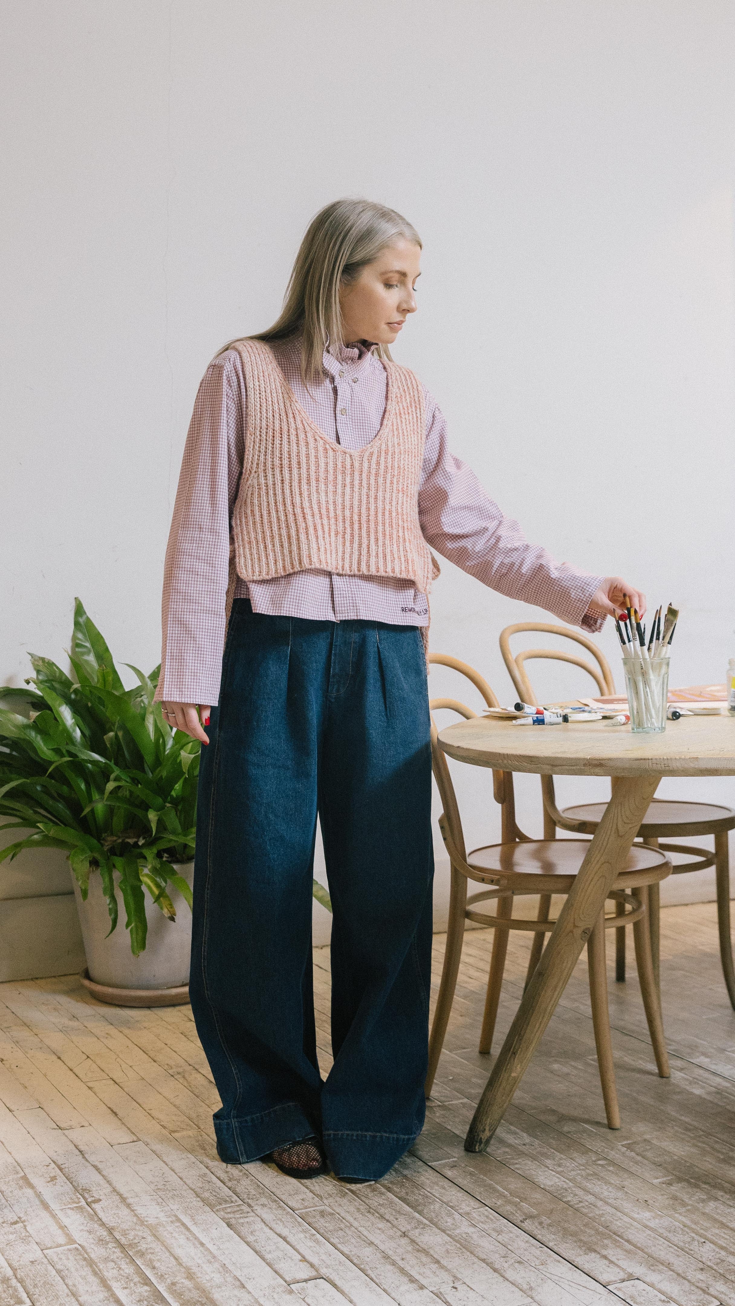 Designed as a versatile wool tabard, this style works beautifully over t-shirts, blouses or dresses, adding warmth and a modern shape for cooler days.