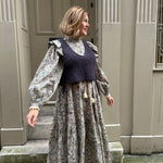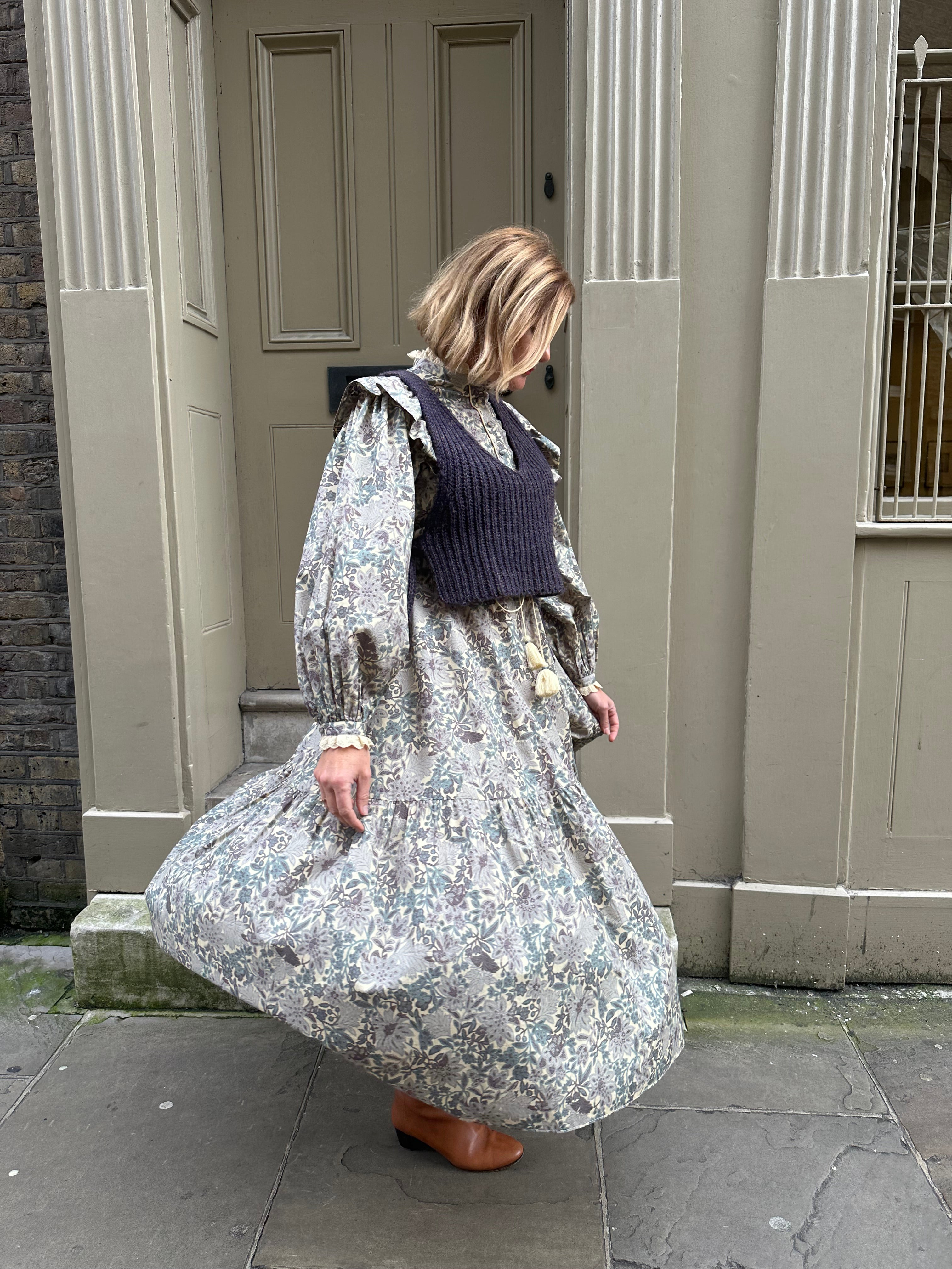 The Eccleston Knit Tabard in Peat is a rich indigo wool vest designed for effortless autumn layering. Knitted in 100% traceable British Bluefaced Leicester wool, this knit tabard blends deep blue and purple tones for a textured, one-of-a-kind finish. Each wool vest is handmade in England, offering both sustainable craft and timeless appeal.