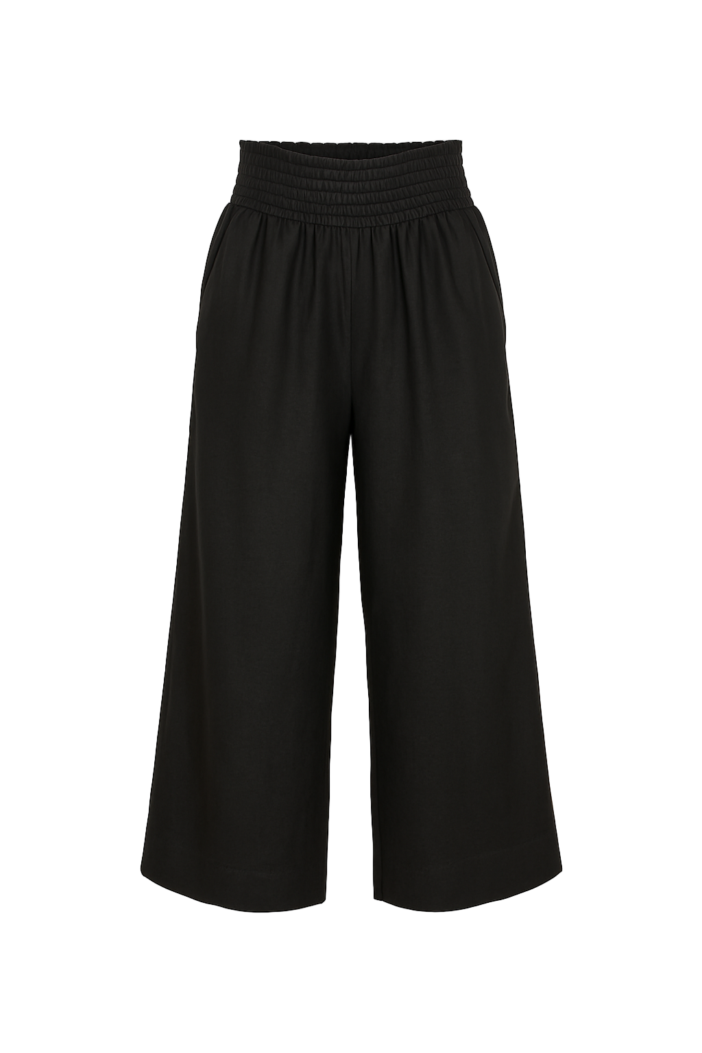 Amelia Wide Leg Trouser in Black Organic Cotton & Linen