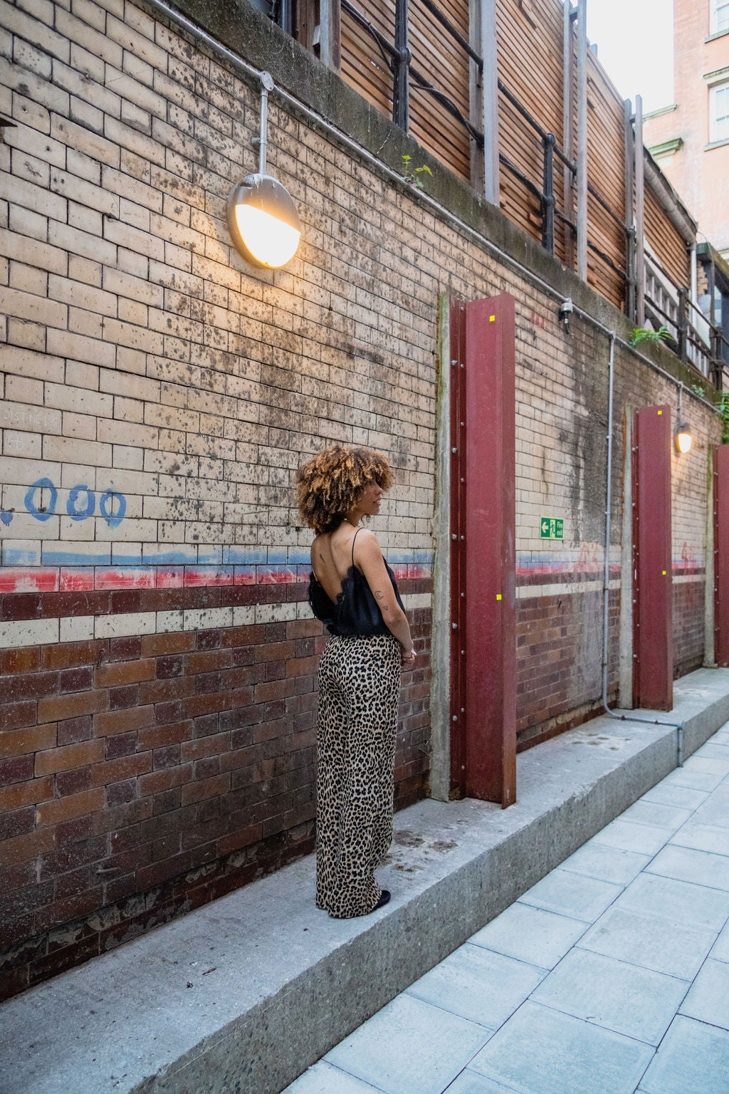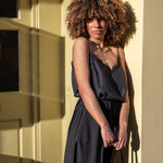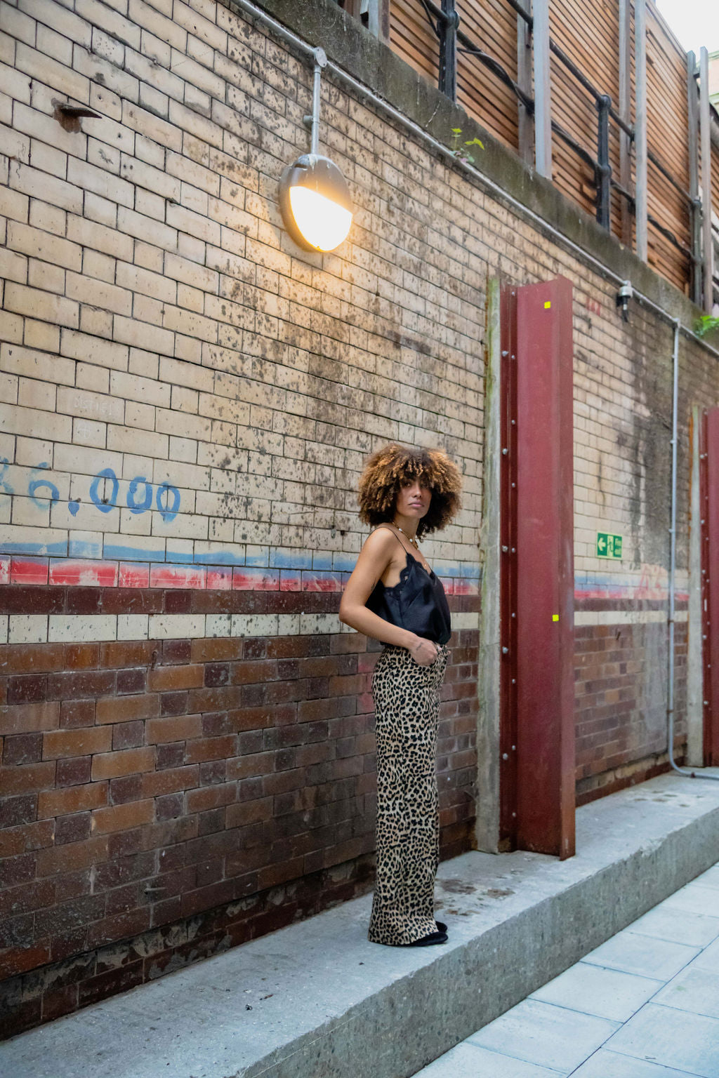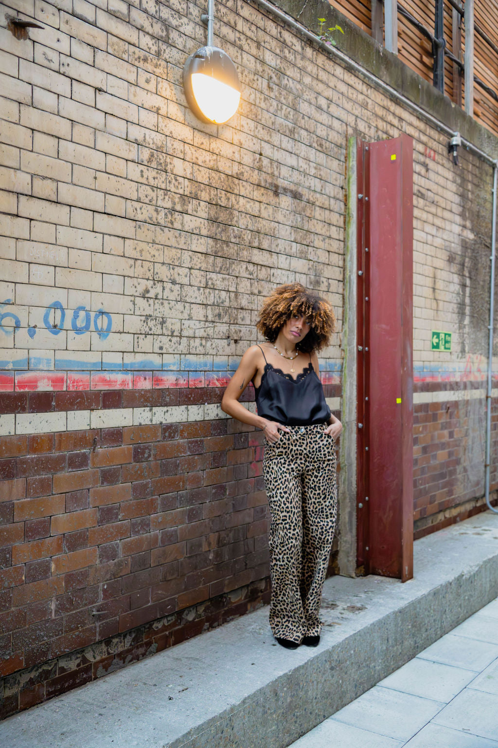 This black silk leopard lace trimmed cami is designed to fit any occasion: from brunch with friends to cocktails or simply paired with jeans.